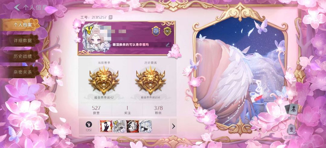 装备描述:红皮2;金皮5;紫皮26;道具皮44;如果有二级说话被设置了,直接申请强制撤销就行,追查到乱设二级密码的必拉黑,皮肤:小黄-炽天使巫铃儿-镜生遗梦逍遥-莲华渡零-渡鸦公爵巫铃儿-镜花辞薇薇安-圣光之谕小黄-遗失的童话莉莉-情公主阿念-灵昭鹿鸣薇薇安-黑月挽歌零-青云逸歌艾伦-水王子爱丽丝-瑞羽衔春小黄-异色序曲莉莉-除妖小师妹小黄-霓裳踏雪爱丽丝-冰公主艾伦-黎明猎手莉莉-莓果陷阱薇薇安-仙锋小姐逍遥-绣春逍影爱丽丝-丝缕哀歌零-搬开山小黄-呱呱雨衣薇薇安-白光莹小黄-罗丽巫铃儿-素影瑶光艾伦-绒绒对决兰-千夜星谕爱丽丝-甜梦派对逍遥-泽引山海阿念-王子与骑士阿念-迷途僵宝;道具:喷气背包-晶澜灵翼专业手电-云端梦想计划摸金符-祝祷词长鞭-飞天绫夜视仪-金丝眼镜额外的背包-飞花令急救包-土拨鼠捏捏铲子-龙鳞铲子-卡皮巴拉小黄豚铲夜视仪-心跳眼镜音响-happy猫音响-冬夜暖忆黄牛能量饮料-雪顶奇愿专业手电-星寂急救包-末章心跳急救包-蔷薇物语短管猎枪-赞萌露比水枪刺刀-紫气东来传送按钮-幻宠之门电击枪-甜蜜泡泡枪桃木剑-最后的独角兽腰包-私藏的银河