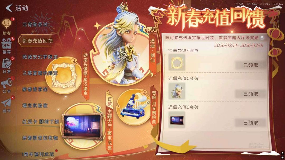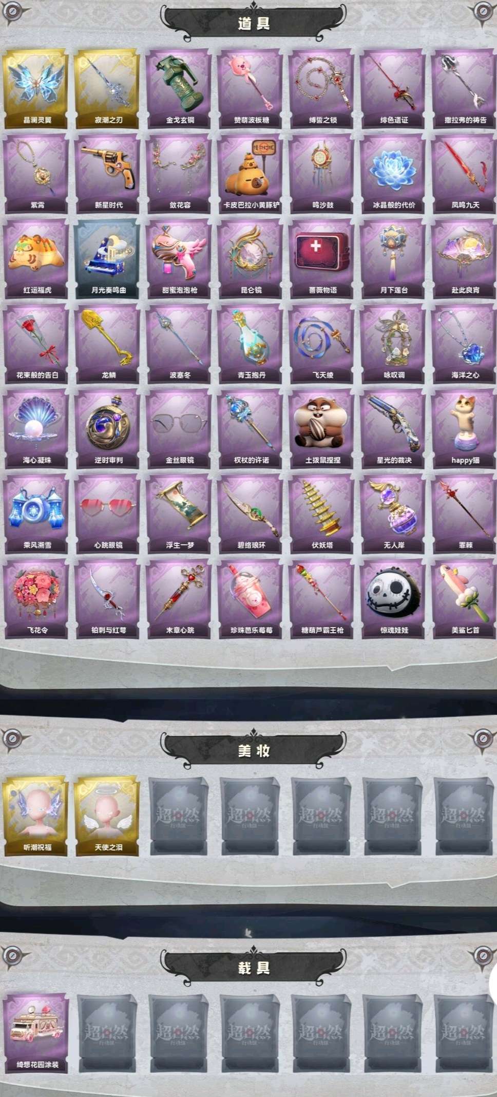 兔宝【满红满粉7金20紫】全图鉴❤️63970氪条❤️瑶台梦春之梦渡鸦公爵✨绮想花园载具✨美鲨匕首