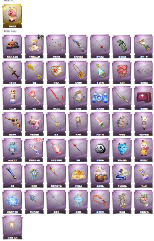 兔宝4金17紫50道具春之声海月息潮圣光之谕镜花辞白泽情公主莓果陷阱除妖师妹狗蛇蜜蜂线索美鲨火花紫车