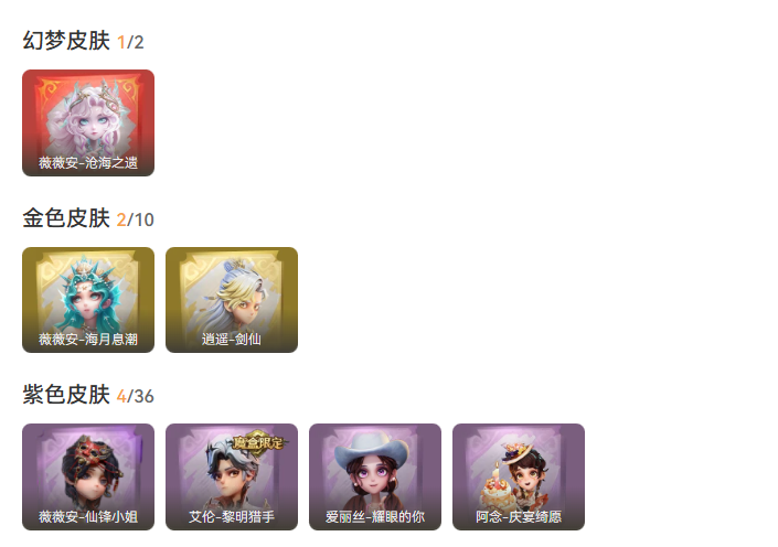 装备描述:红皮1;金皮2;紫皮4;道具皮20;皮肤:薇薇安-沧海之遗,逍遥-剑仙,薇薇安-海月息潮,爱丽丝-耀眼的你,艾伦-黎明猎手,薇薇安-仙锋小姐,阿念-庆宴绮愿;道具:桃木剑-寂潮之刃,刺刀-铂刺与红萼,折扇-露露扇,长鞭-新春炸响,黄牛能量饮料-无人岸,闪光弹-金戈玄铜,急救包-蔷薇物语,喷气背包-乘风溯雪,除颤仪-冰晶般的代价,长鞭-缚誓之锁,葫芦-海心凝珠,铲子-龙鳞,电击枪-权杖的许诺,音响-月光奏鸣曲,专业手电-花束般的告白,长枪-糖葫芦霸王枪,音响-happy猫,长枪-波塞冬,摸金符-海洋之心,伞-伞;美妆:美妆-听潮祝福,美妆-萌兔气泡;饰品:头饰-呆滞头套,头饰-芝麻糊汤圆,头饰-卑微头套,头饰-蒜了八,头饰-园丁鲨鲨头套,头饰-太空鲨头套,头饰-萨卡班甲鱼头套,头饰-哈士奇头套,头饰-面具马头套,头饰-雪墩墩头套,头饰-马上有钱,头饰-鱼头怪头套,头饰-饺饺者头套,头饰-滑稽头套,头饰-烛光,头饰-嘻嘻头套,头饰-烈焰红唇头套,头饰-像素朋克墨镜,头饰-后室幸存者头套,挂饰-晚安小熊,挂饰-钗头凤,挂饰-孤独对望,挂饰-糖果守卫,挂饰-尘封旧事,挂饰-不朽的今夜,背饰
