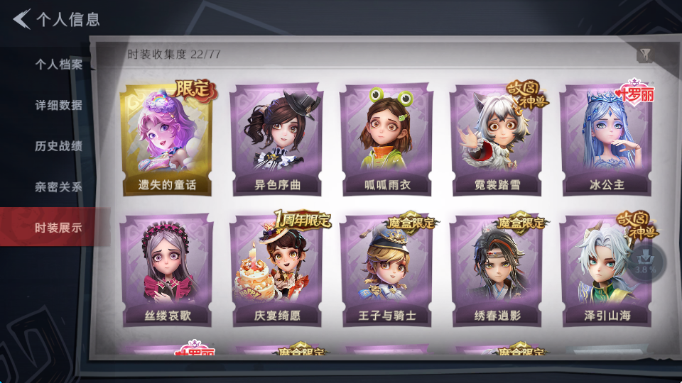 装备描述:道具皮16;皮肤:小黄-遗失的童话,薇薇安-白光莹,逍遥-绣春逍影,小黄-异色序曲,薇薇安-黑月挽歌,爱丽丝-冰公主,阿念-王子与骑士,阿念-庆宴绮愿,爱丽丝-丝缕哀歌,逍遥-泽引山海,小黄-呱呱雨衣,巫铃儿-素影瑶光,小黄-霓裳踏雪,爱德华-梵卓之礼;道具:摸金符-花落精绝,短管猎枪-星光的裁决,急救包-蔷薇物语,专业手电-花束般的告白,刺刀-紫气东来,桃木剑-永眠曲,专业手电-云端梦想计划,刺刀-碧络琅环,传送按钮-幻宠之门,刺刀-小鲨匕首,腰包-月下莲台,转轮手枪-新星时代,闪光弹-金戈玄铜,桃木剑-最后的独角兽,音响-鸣沙鼓,铲子-龙鳞;美妆:美妆-萌兔气泡;饰品:头饰-火爆了头套,头饰-惊魂南瓜头套,头饰-驼半仙头套,头饰-大葱明头套,头饰-哈士奇头套,头饰-太空鲨头套,头饰-小财神豚豚头套,头饰-炙热烧烤,头饰-园丁鲨鲨头套,头饰-嘻嘻头套,头饰-呆滞头套,头饰-滑稽头套,头饰-腊肠扭扭,头饰-萨卡班甲鱼头套,头饰-咬咬鲨头套,头饰-雪墩墩头套,头饰-芝麻糊汤圆,头饰-鱼头怪头套,头饰-卑微头套,头饰-面具马头套,头饰-烈焰红唇头套,头饰-像素朋克墨镜,头