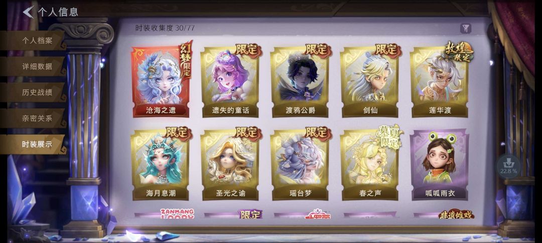 装备描述:1红8金12紫沧海之遗瑶台梦剑仙莲华渡春之声渡鸦公爵圣光之谕遗失的童话泽引山海搬开山