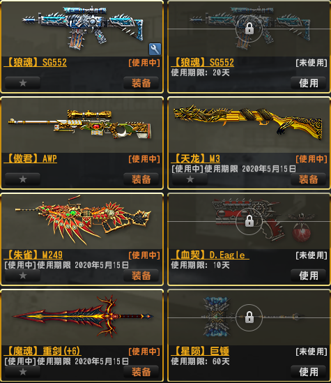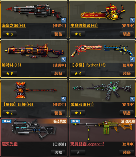 6永恒6巨锤6海皇6电锯6加特林鲨鱼盘龙狼魂破军光耀傲君