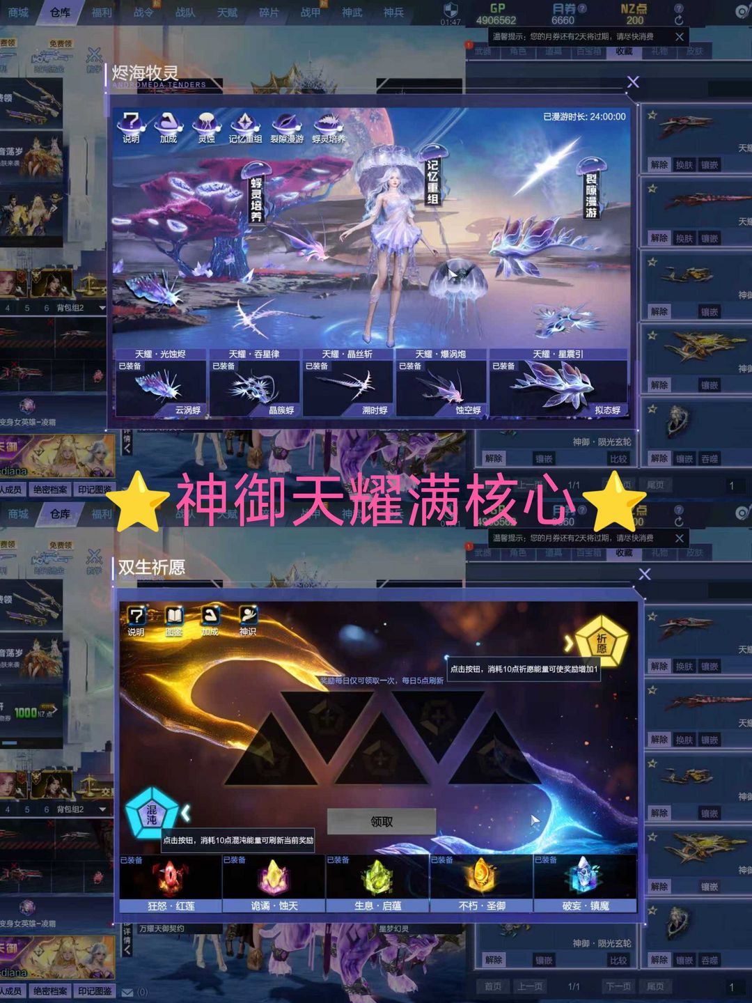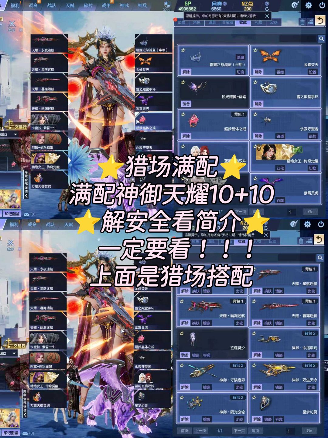 天耀神域10+10⭐三臂铠 三连携 ✨龙曦凌霜✨双姝霜霆盔 永寂僚机✨31页皮⭐基础885⭐租前看简