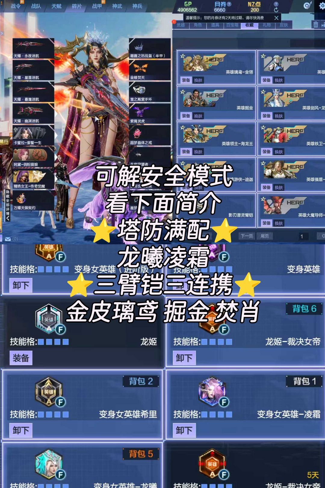 装备描述:解码看这个❤️(想单刷的可以去战队频道建房间可以创建 可私) ➕球球连起来搜索《1 3 7 9 7 2 1 4 6 0》❤️解码看这个《基本上秒回,没回就是在睡觉,理解一下不可能24小时在线》晚上11点没回消息,就是睡觉了《半夜解不了码理解一下》 ✨网吧用户看过来,网吧用户租号会有溢价✨手机下一个租号玩APP下单,再用电脑登录即可✨ 登录失败多试几次上号器的问题 秘境基础880全模式,8boss角色女王吞元带晶体 戒指霜庭之怒头。翅膀金蝰焚天,神域天耀10+10天耀带皮 皇权幻域天帝神皇6核天启波塞冬七神武糖心星诸神套 创世套天坤套天神套,全套eva联动全套奥特曼联动僚机 天穹怪兽永寂。双姝升级伴身灵。塔防三臂铠三连协,金翎双龙曦 爆破全套快切 30多页皮肤 主流都有。