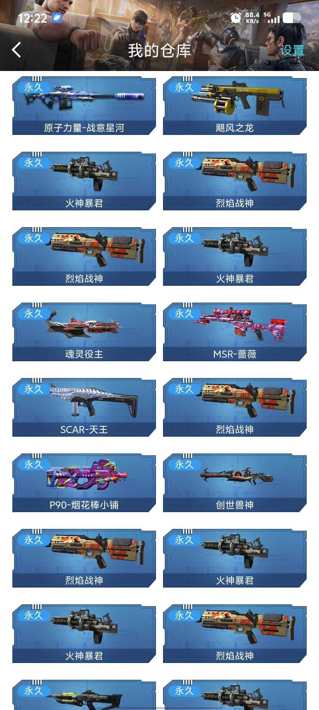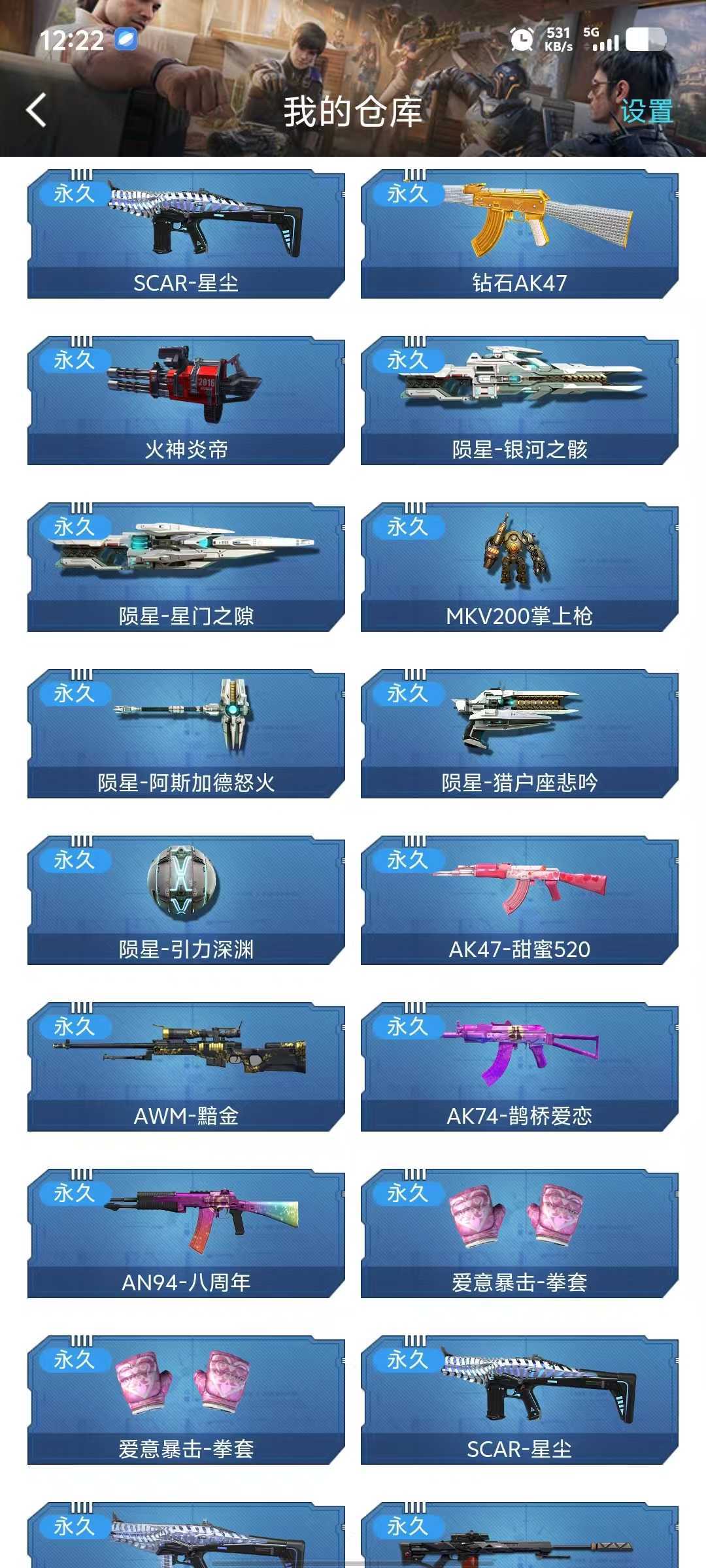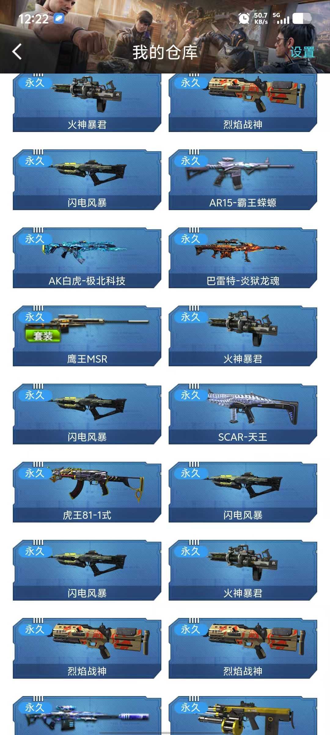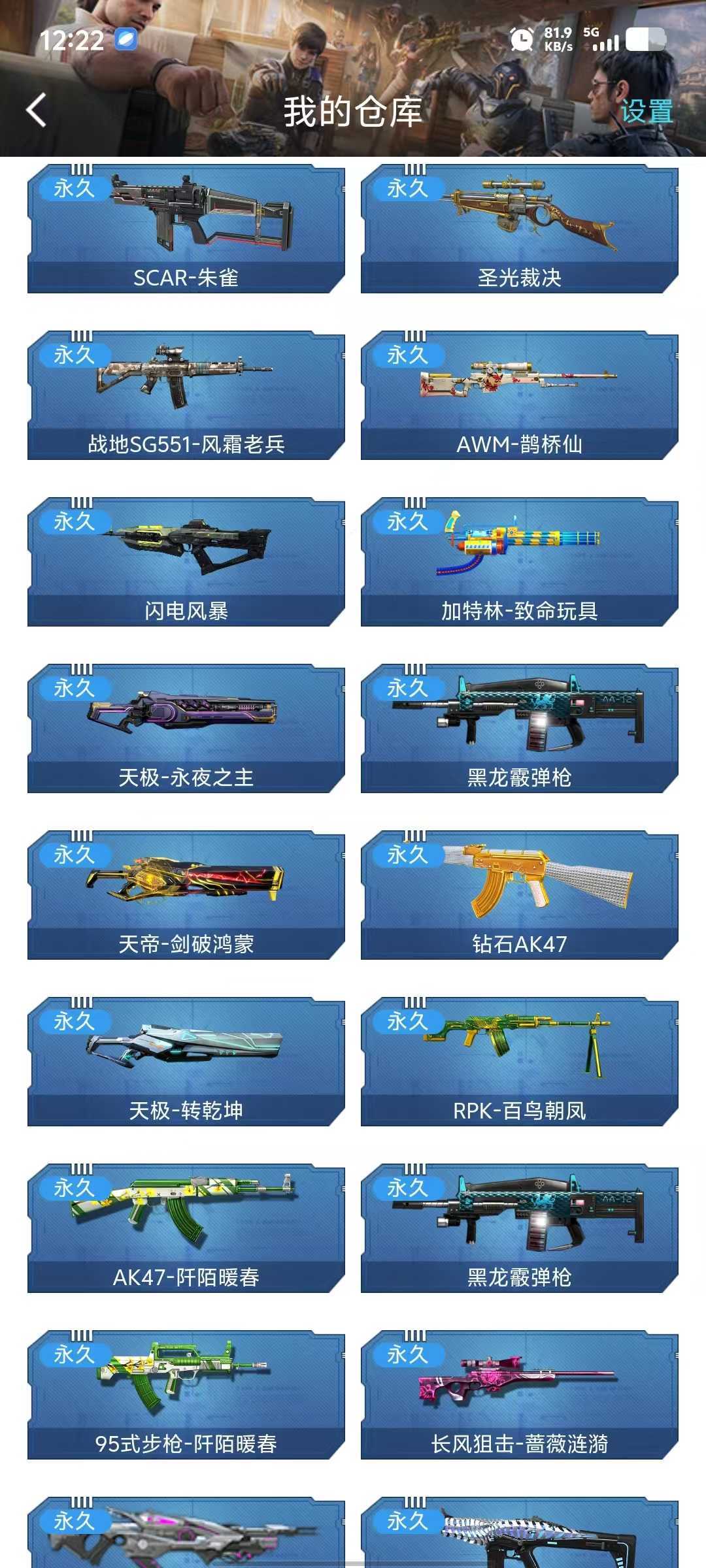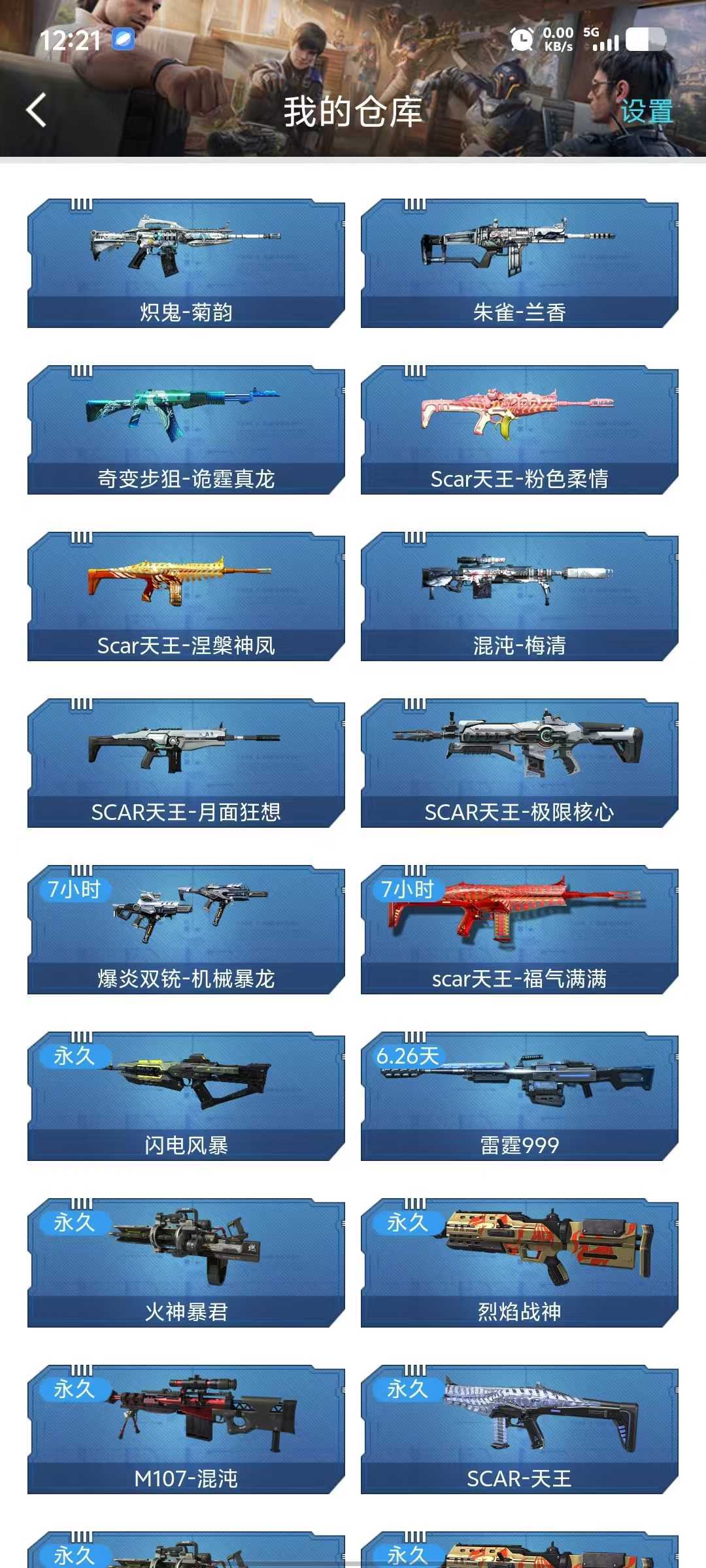 装备描述:pvp爆破全装:SCAR天王4把(极限核心、月面狂想、试做源能、粉色柔情、),朱雀1把(、比翼双飞、试做源能、兰香、死亡艺术、冰雪竞速),电离对撞,原子力量—战意星河,混沌2把(梅清、重温旧梦、试做源能、螺旋动力),圣光裁决(庚子新年、爱神之失、重温旧梦),M4A1赤鬼满配(情意如丝、菊韵、蒸汽幻想、试做源能),奇变步狙(诡霆真龙),AK白虎—极北科技,沙鹰—西部之王2把,黄金之翼2把(蔷薇独角兽),虎王套,鹰王套,重装先锋,玩具手枪—无所不误,短刀—水晶之恋,速冻柳刃刀,审判之刃5把,