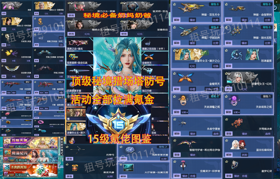 限制: 撤单率<40%才可租用此帐号装备描述:秘境99关✅全模式满配活动满氪〖安全模式可帮解除,点上号器的连系号主发安全码 等待会即可〗,全套装全武器 | 全模式满配弹夹卡齐全,新道具全有全氪,全BOSS全角色,63页皮肤50移速树哥✅【五转武装满生命神武流,奶妈奶爸秘境99关,超10,971基础伤45星光伤满配满基础,45星风神武,45冰神武,红色能量再生全程飞】【✅新增道具】:【青鸾引-丹翎流音,奥丁之眼,离子-ARC破晓,游侠-鹤唳穿云先行物】最新飞龙坐骑升级版【涅槃女王+波塞冬女王-潮夕之心,潮夕头饰,冰火金蝰翼,〖神谕套全核心,元初双极羽翼,天命渊瞳戒,波塞冬女王-幻化】〖莱娜 | 天命观吾之戒-永寂守望者〗【最新变身女英雄望舒+璃璎丨全息搭建枪+焦油】【英雄影戍-玄械丨英雄焚霄-玄烬丨四臂铠星桓皮肤】塔防最新冰霜精灵〖双姝升级蓝雨玄扇双姝,异变残肢,智慧手枪〗【不灭焰甲改+战甲转换器+无尽星河战甲】钢管舞动作,霜霆之怒战盔丨天耀皮肤全套拉满【涅槃幻化,涅槃再临,蚀日天蝰】,龙曦皮肤-凌霜-绫羽,升级鳄鱼铁血暴君丨黑武电磁-鹿踏祥云丨混沌-驭浪者-寰宇黑星丨朱雀-NSL怒焰丨暗星黑冕 | 日月两仪-月 | -龙太子海