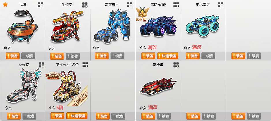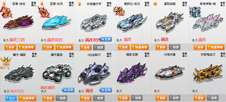 装备描述:〓S〓至尊影龙烛龙、至尊涅槃冰凤、终极爆天甲、爆天甲-曜影7阶、终极麦凯伦-赵云、紫电神驹-梅 〓T2〓悟空齐天大圣5阶、雷霆机甲、圣天使、孙悟空 〓A〓30辆〓电玩雷诺、雷诺幻夜2阶、裁决者 〓C〓飞碟 〓骑宠〓4只〓星河绘画师+10 〓其他〓7W魅力、1200W荣誉、紫钻7 〓女〓60页套装〓 〓男〓40页套装〓