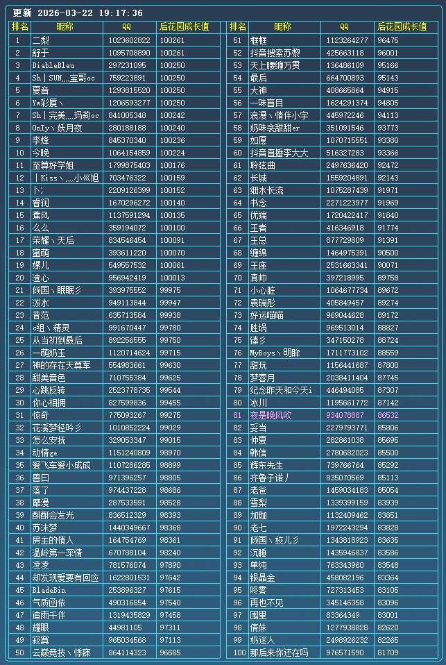 装备描述:长期挂机退网。装备有些老了,黑曼巴至尊火鲤至今尚有一战之力。近期偶尔会刷魅力。 长期黄名红人榜账号(后花园前百),可参与所有玩法,高成就。玩的开心就好。 游戏中发言请文明用于语,避免禁言影响休息体验。