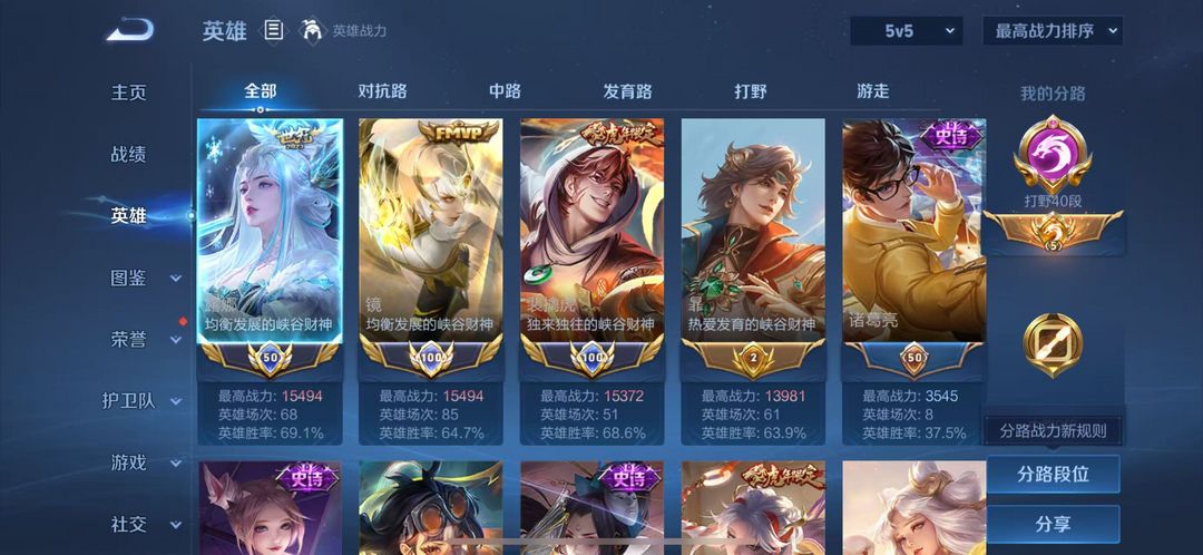 有魔方/在榜县标露娜镜老虎/历史1.5万战小国标镜露娜裴擒虎1.39万暃/巅峰打野40段高评分高胜率