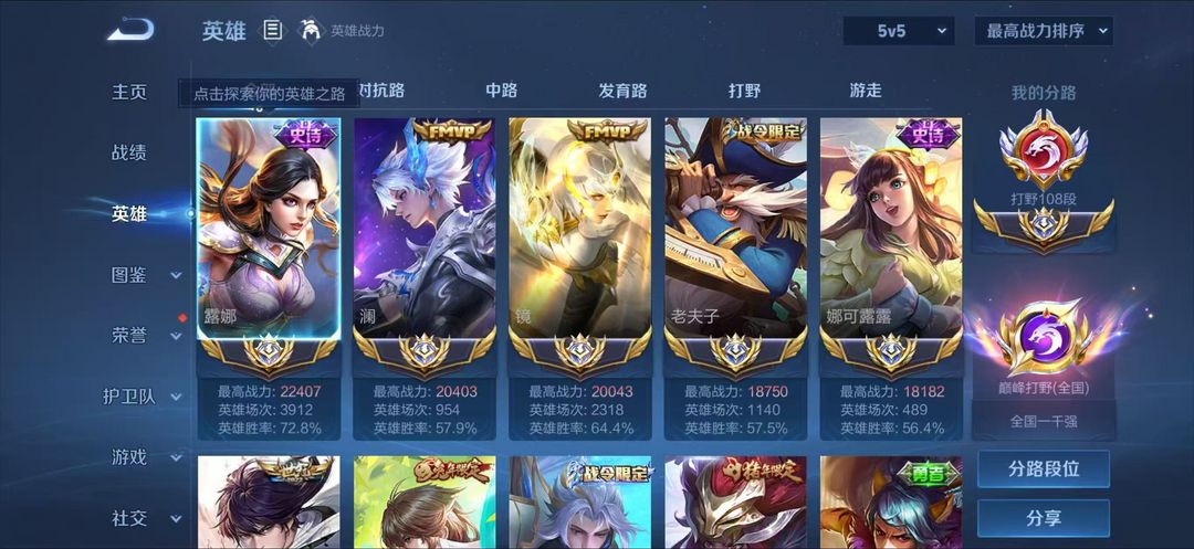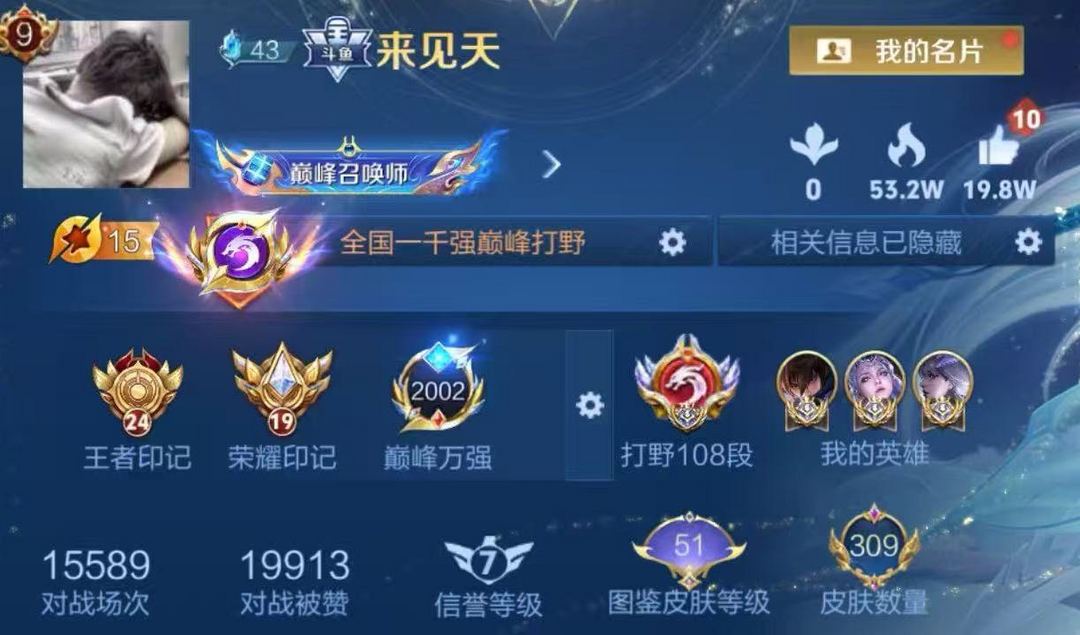 (账号无法排位)正式服主播logo认证号⭐在榜省五露娜⭐本周巅峰万强框⭐108段打野十国服⭐