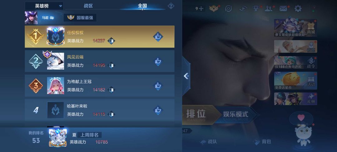 巅峰1953万强主页魔方开✨3月在榜数字金标马超夏洛特✨历史七国✨可排位禁巅峰✨挂机扣分打巅峰必拉黑