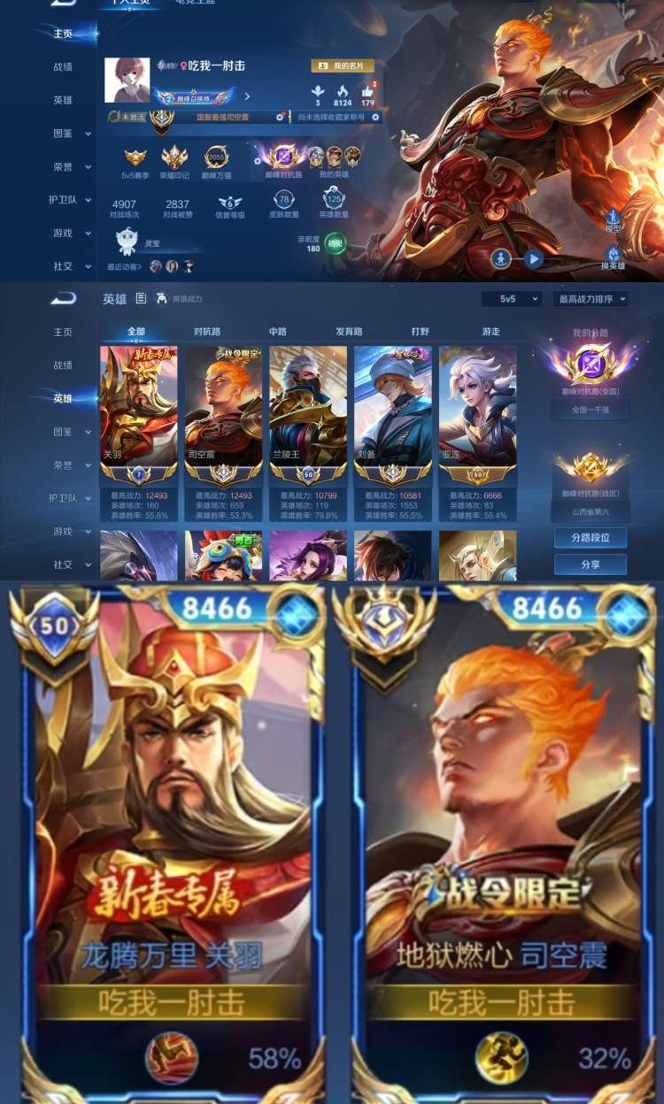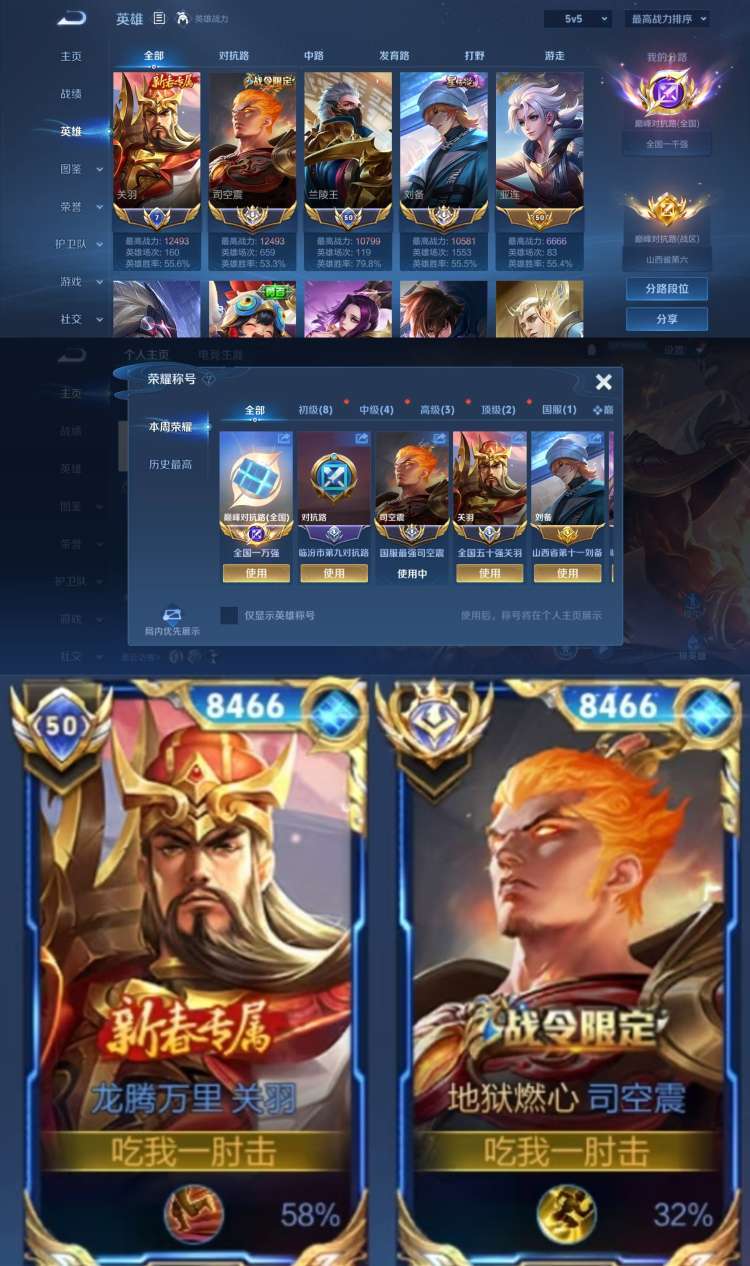 总榜8466名巅峰万强框❤️2月在榜大国服司空震|小国标关羽❤️可排禁巅峰❤️历史大国服刘备