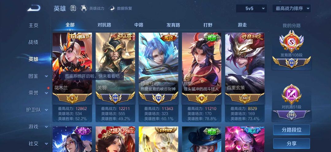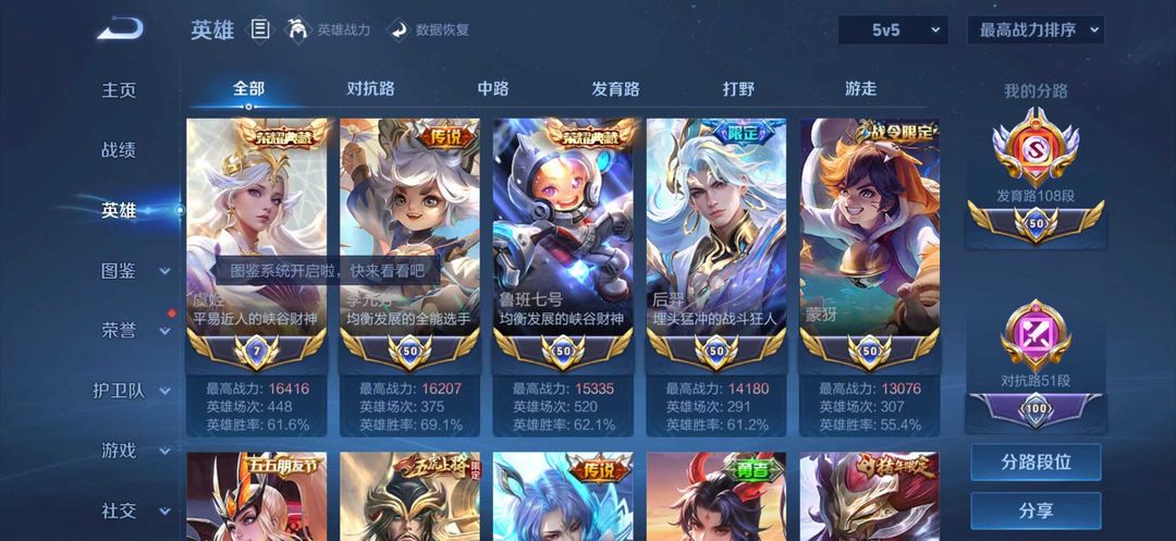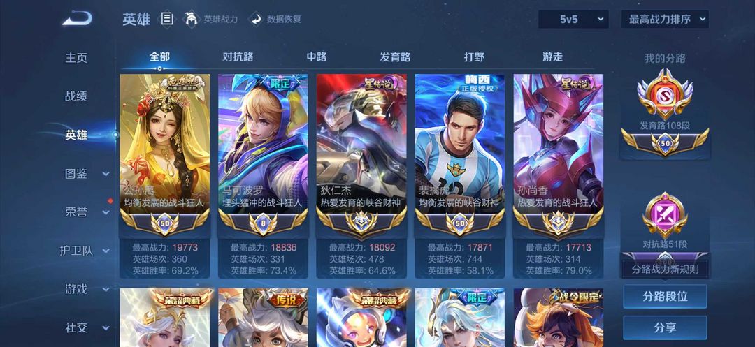 108段发育路⭐v10历史双大国服孙尚香狄仁杰1.97公孙离⭐12小国服虞姬马克⭐高战力⭐