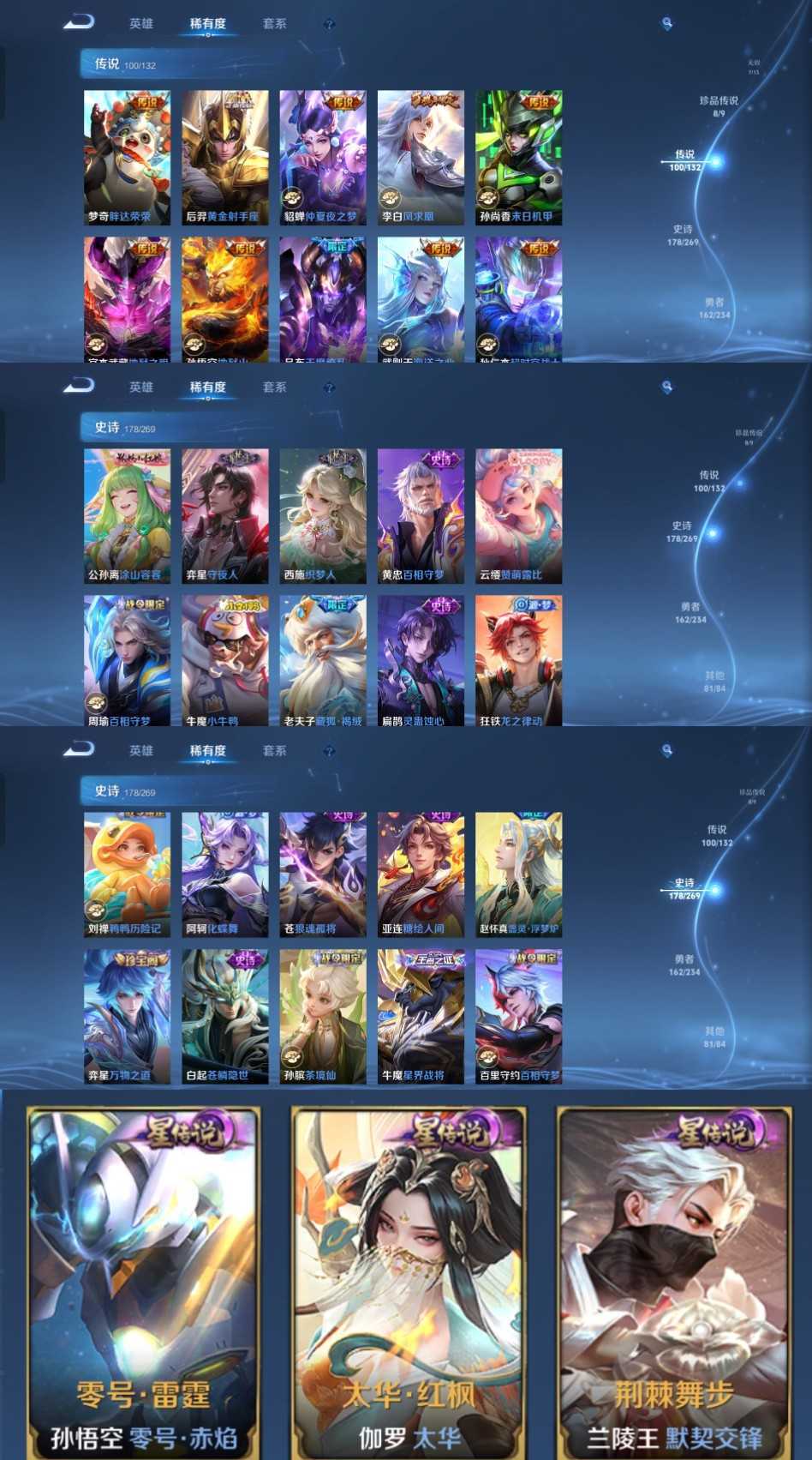 限制: 租号2次及以上 |装备描述:时间到了还登录白玩或者顶号全部改密拉黑处理永不解除,顶号机器会秒禁玩改密,顶号不仅拉黑还没得玩,赚三两块不容易,请理解谢谢。 ????????????????? 请勿开挂,挂机,送头,骂人,撤单后游戏等如有违规永久拉黑永不解除。 重置二级密码不要费劲了,号主每天都会上号查看,多行不义必自毙,人在做天在看,多做好事多自律,少做缺德事。 该号英雄129个皮肤540个,典藏5个,无双7个,珍品传说8个,星传说3个,传说100个,史诗178个,祝您游戏愉快~