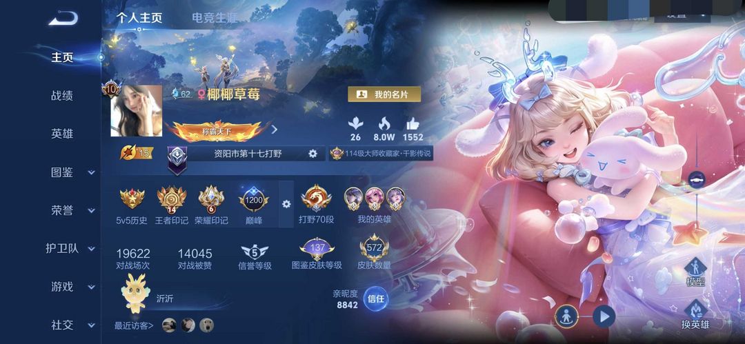 不禁言❤打野70段瑶三丽鸥大耳狗❤满典藏魔方kt小兵9天幕瑶全皮❤六国服❤国服镜露娜澜暃国标瑶暃赵云