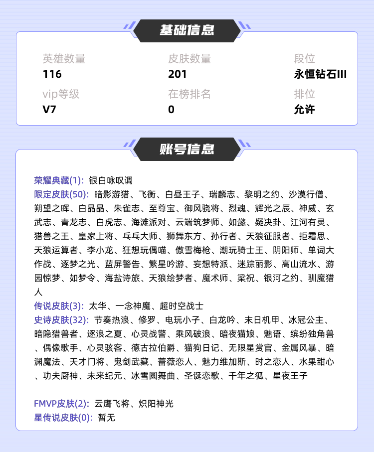 【V7 200皮】银白永叹凋✸五神兽✸太华✸超时空战士✸辉光之辰✸御风骁将✸开挂追责