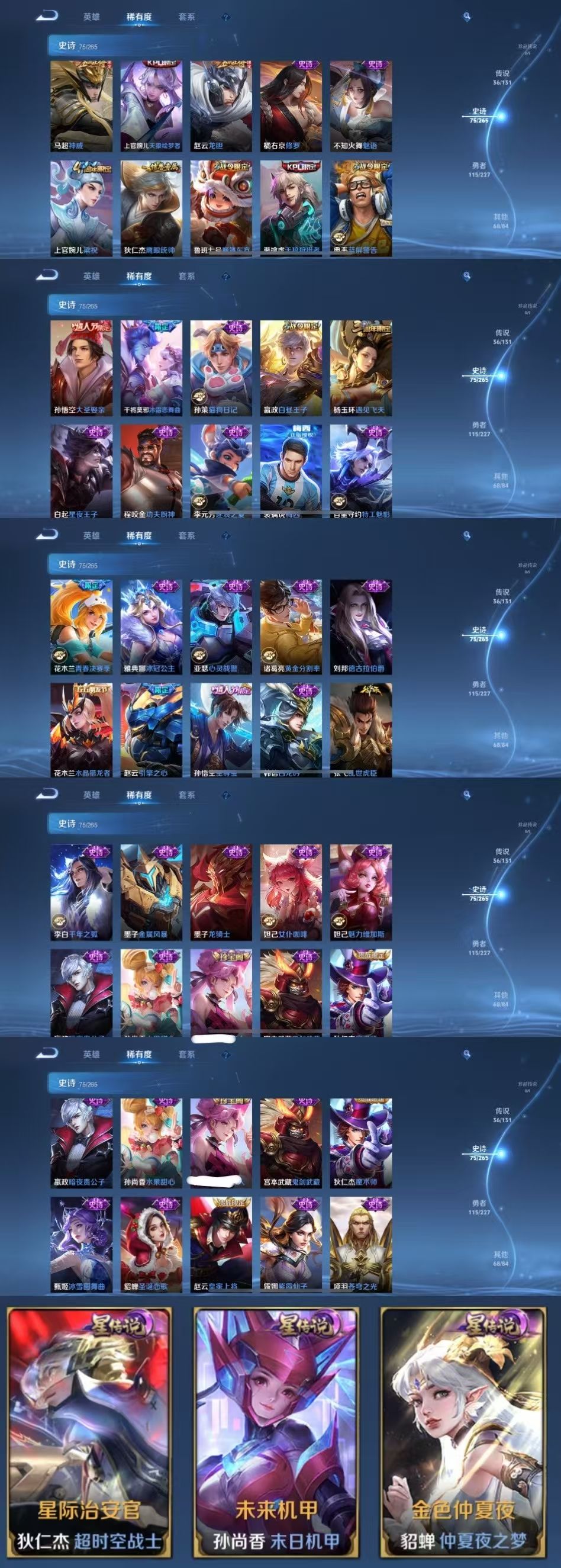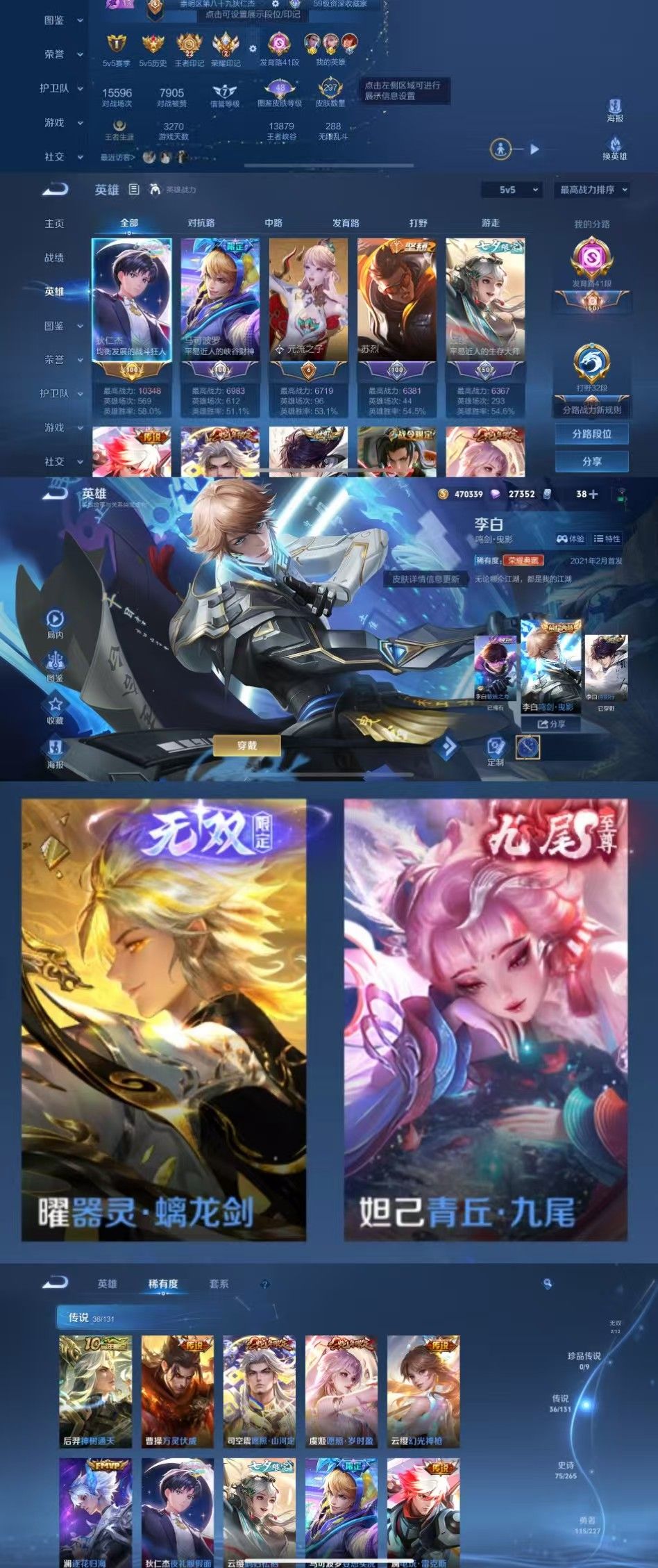 限制: 租号1次及以上 |装备描述:时间到了还登录白玩或者顶号全部改密拉黑处理永不解除,顶号机器会秒禁玩改密,顶号不仅拉黑还没得玩,赚三两块不容易,请理解谢谢。 ❤❤❤❤❤❤❤❤❤❤❤❤❤❤❤ 请勿开挂,挂机,送头,骂人,撤单后游戏等如有违规永久拉黑永不解除。 重置二级密码不要费劲了,号主每天都会上号查看,多行不义必自毙,人在做天在看,多做好事多自律,少做缺德事。 该号英雄126个皮肤297个,典藏1个,无双2个,星传说3个,传说36个,史诗75个,祝您游戏愉快~