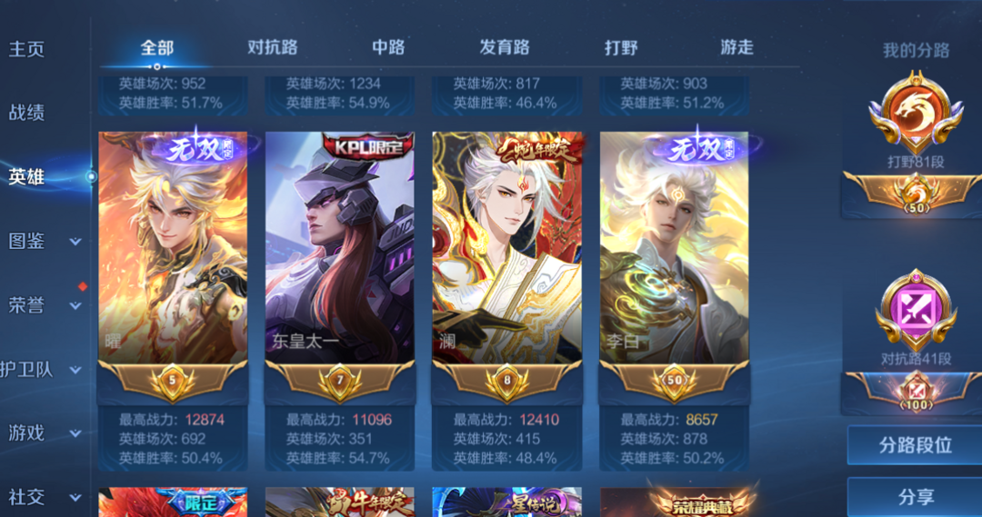 禁巅峰.巅峰万强1300名闪电框♉6省标玄策老虎李白韩信诸葛马超♉打野81段♉满打野无双新皮