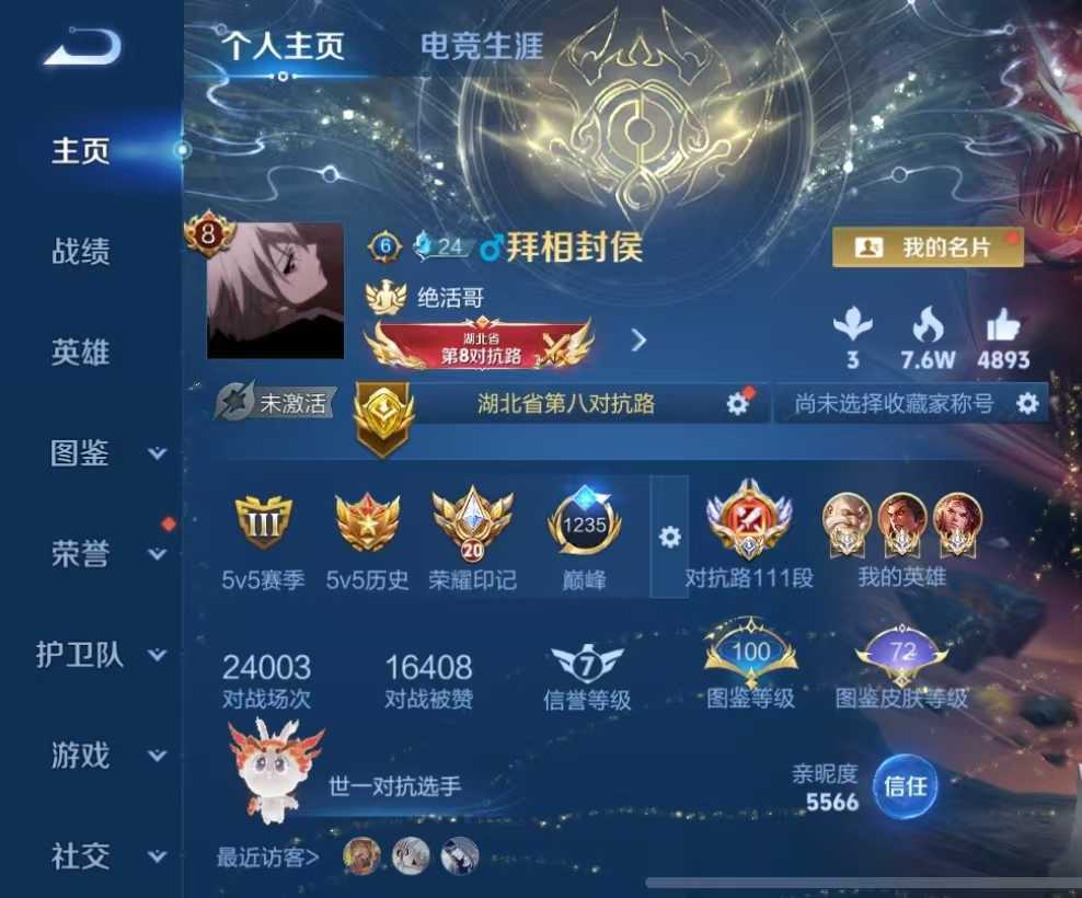 游戏区服:王者荣耀-QQ苹果-QQ账号 -手Q75区-精灵之王