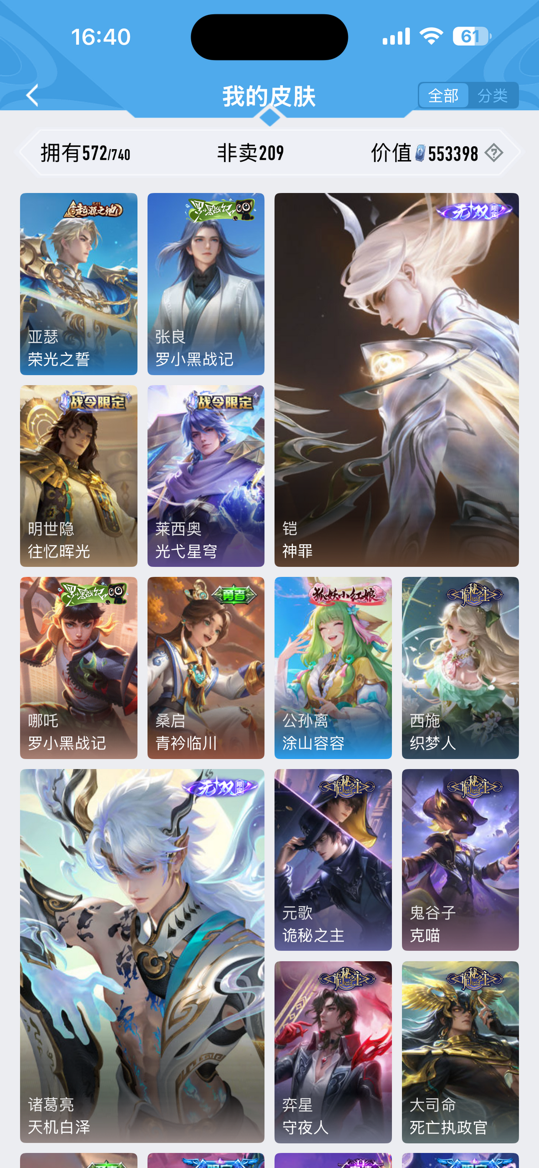 v11贵族572皮貂蝉无双全屏天幕全套诸葛/凯/李白/韩信/耀无双全套珍品传说全套