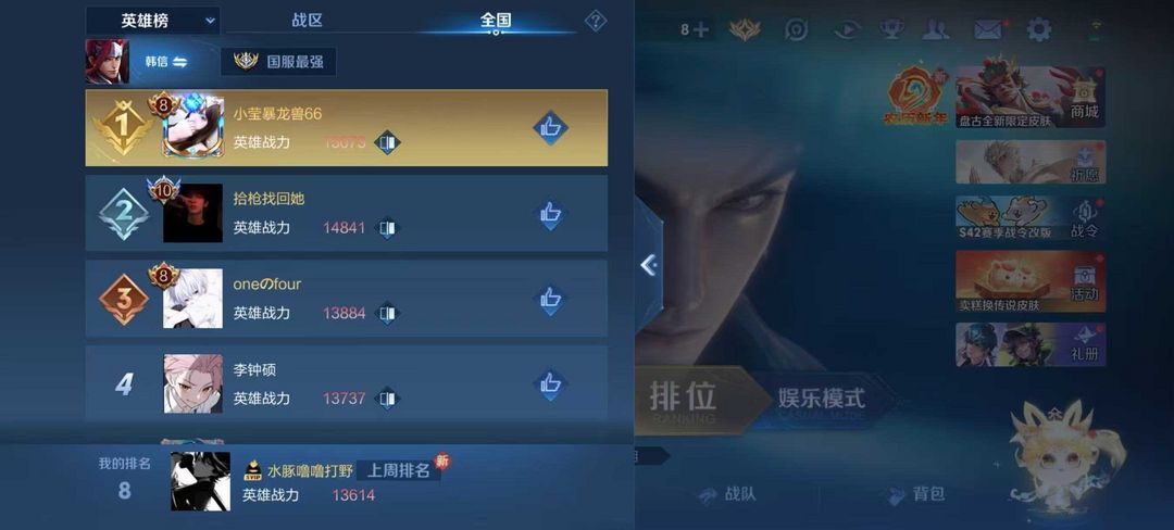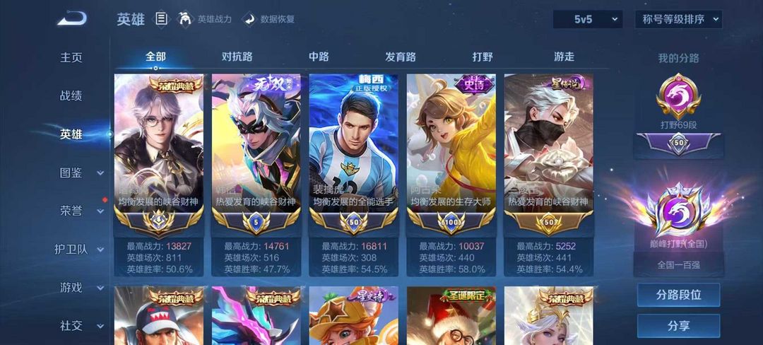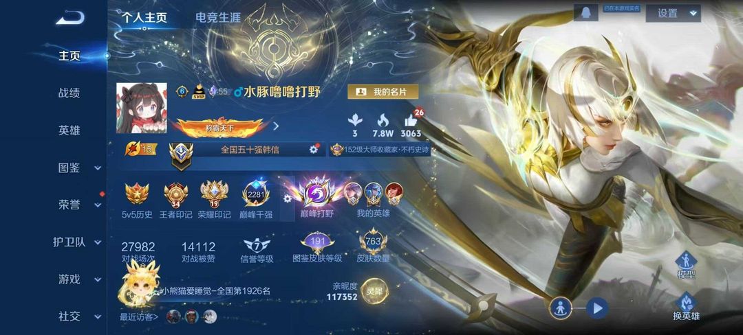 764满皮肤/本周在榜国服韩信/巅峰百强打野/满典藏/满无双♈满珍品满按键♈多天幕/禁巅峰
