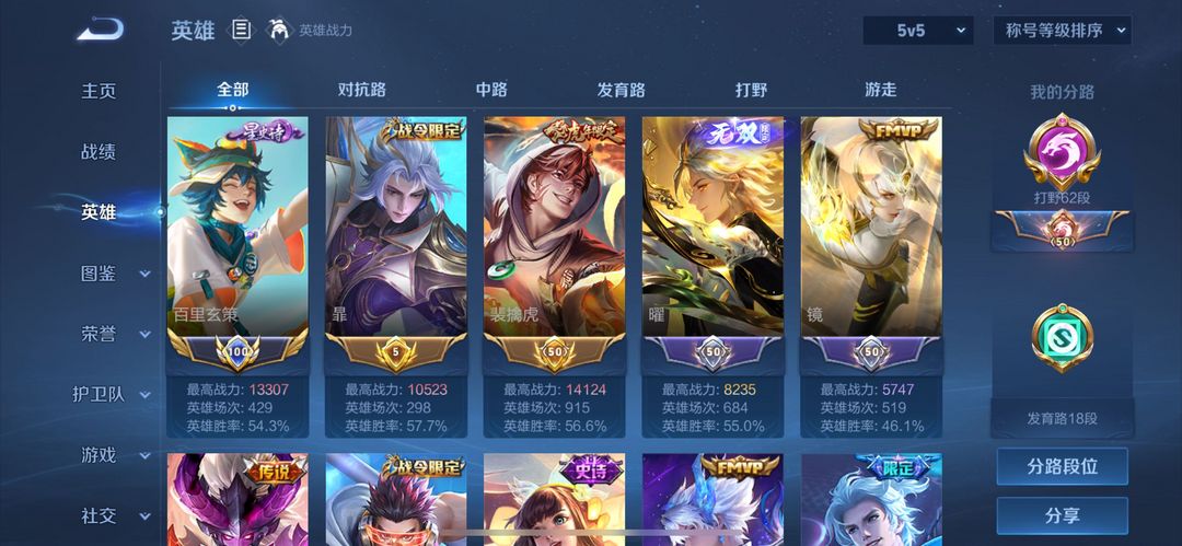 国服玄策62段打野在榜六市标曜澜镜老虎⭐️曜全皮璃龙剑⭐️九霄神辉⭐️ 枫霜烬⭐️武陵仙君⭐️