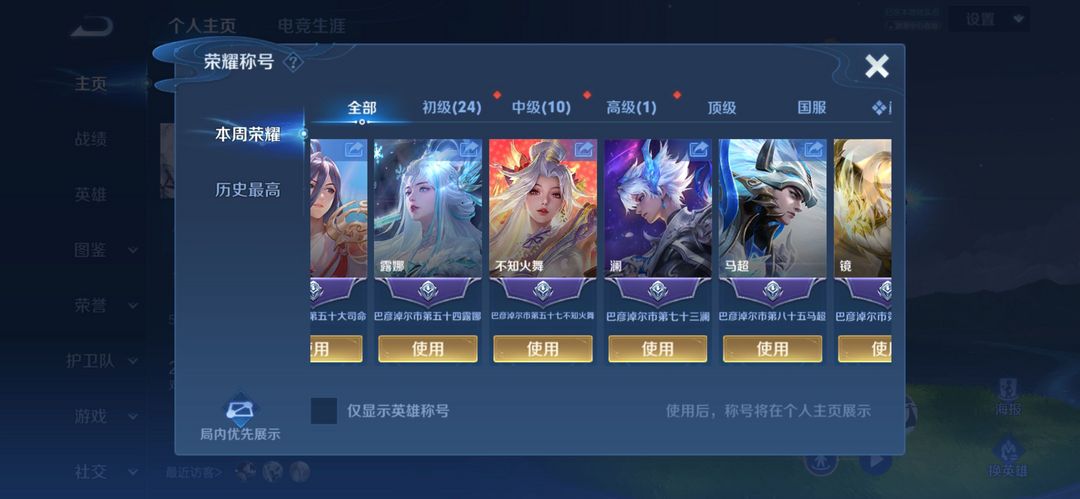 限制: 撤单率<70%才可租用此帐号装备描述:毁号行为涉及毁坏虚拟财产罪及计算机安全罪,请文明游戏素质游戏,让我们共建美好租号平台!想用彩标右上角设置隐私关闭荣耀称号 文明游戏禁止挂机骂人禁止利用账号进行开挂、使用辅助违规软件诈骗等违规操作。请游戏局内保持文明,防止禁言影响他人游戏,祝您玩得愉快!