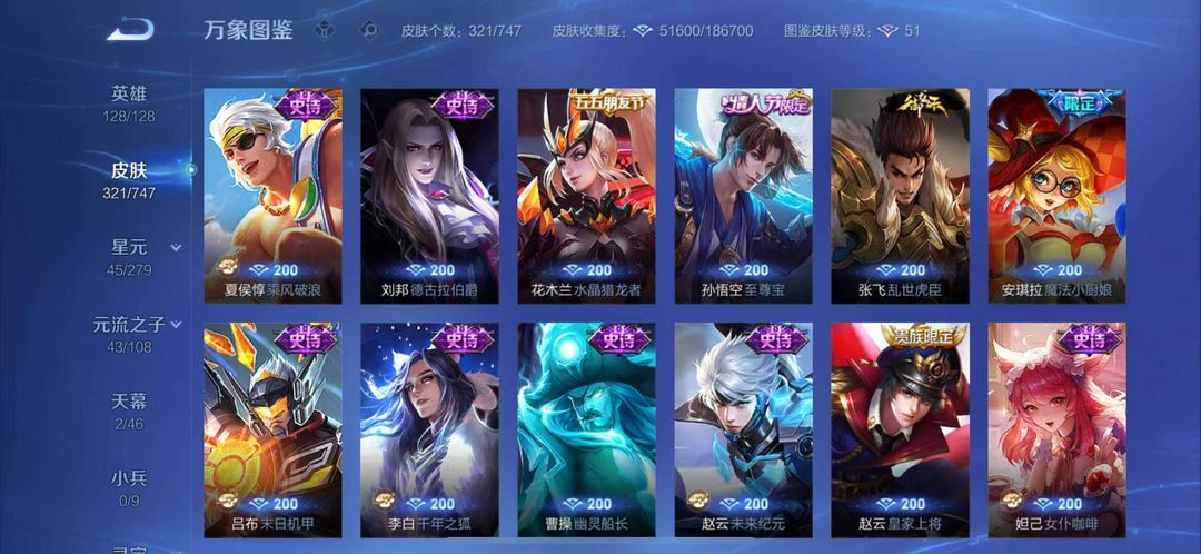 历史国服元歌,历史巅峰2300小魔方,贵族v9,321个皮肤