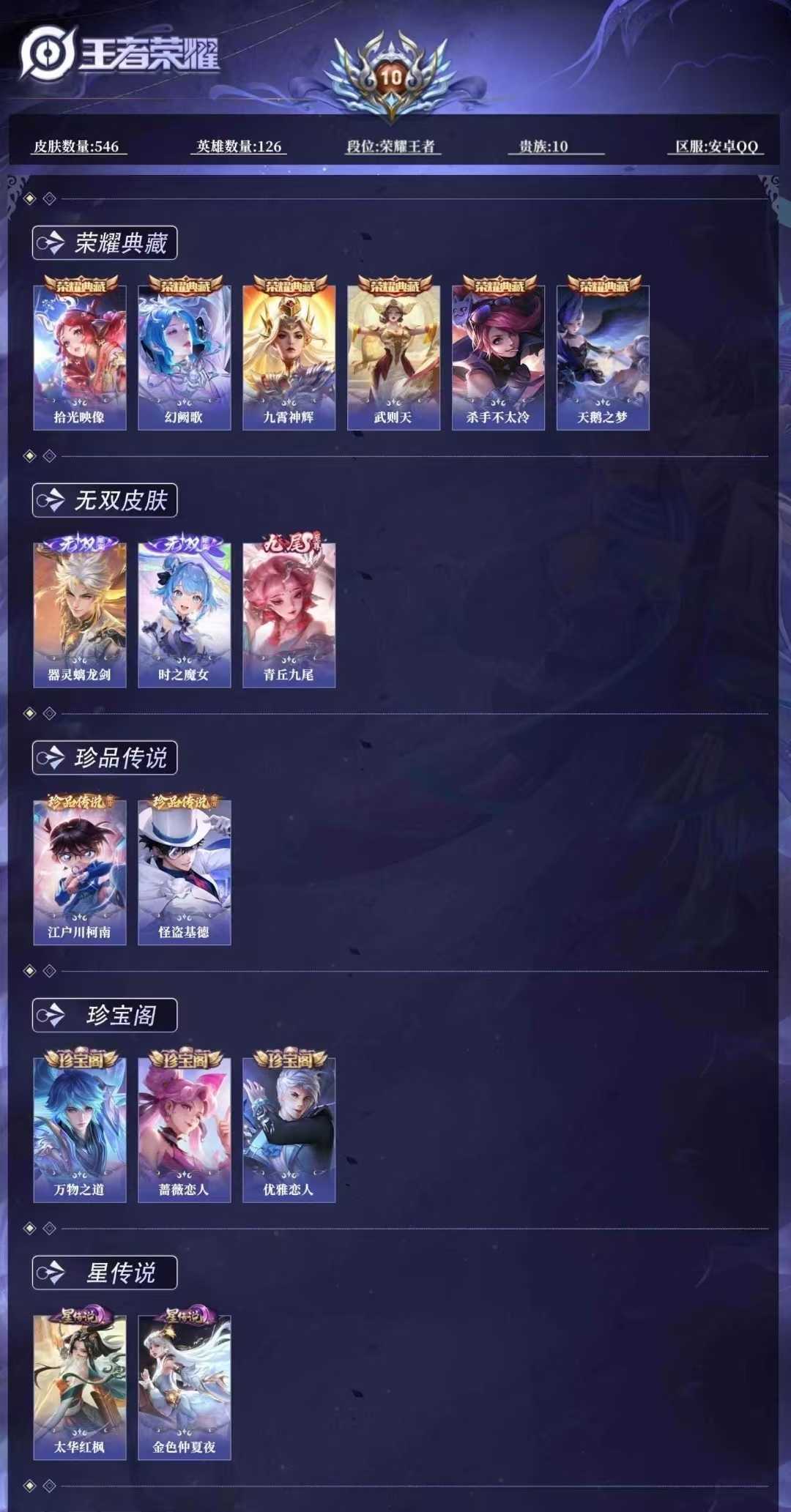 限制: 租号5次及以上 |装备描述:【C216】贵族V10~546皮肤73传说6水晶3无双2珍品九尾天狐,曜无双,时之魔女,基德柯南,蛇年司空震蛇年澜,蛇年虞姬,拾光映像,紫瑶,映山客,牧神诗旅,美少女战士,甄姬致美,幻阙歌,九霄神辉,天鹅之梦,杀手不太冷【全山海情兔年,全寅虎,全五虎上将,全牛年,全五兽】
