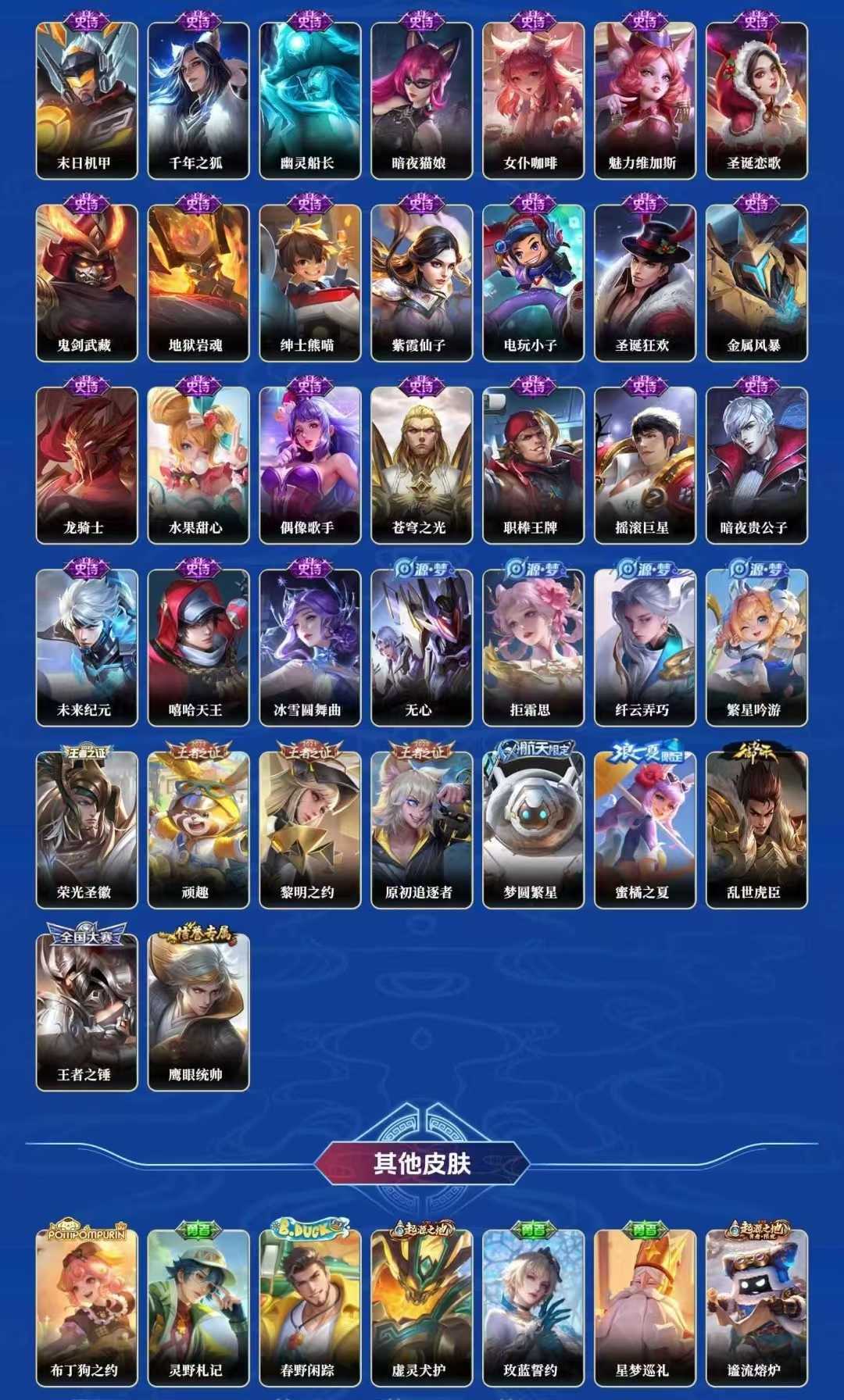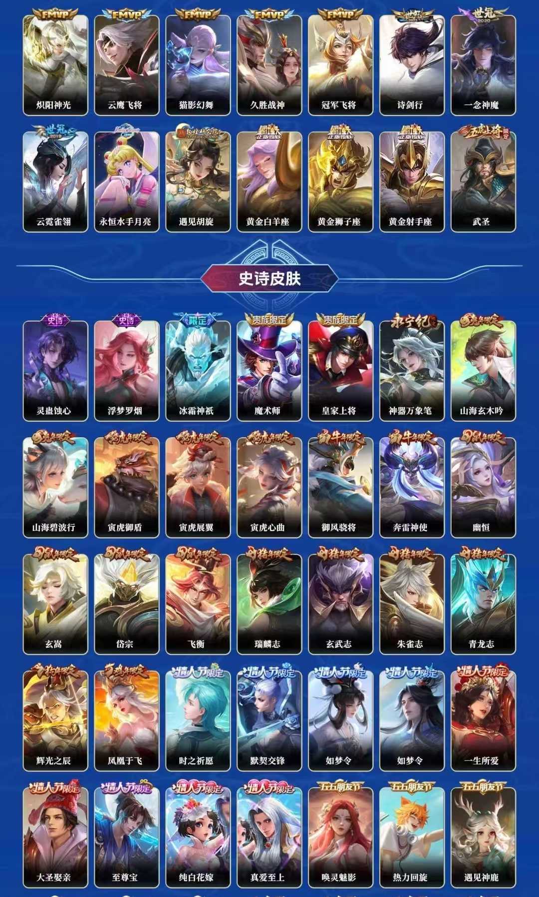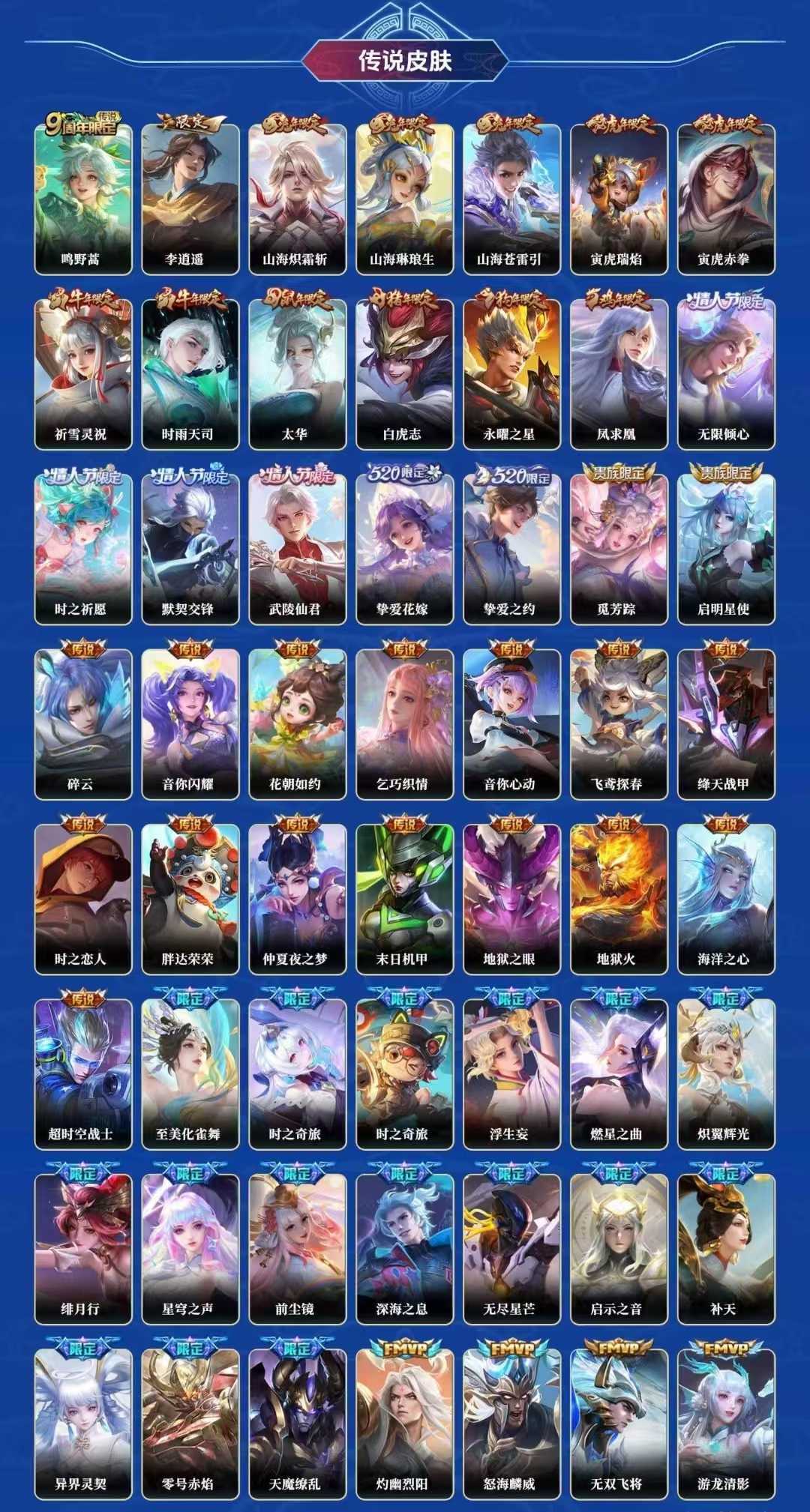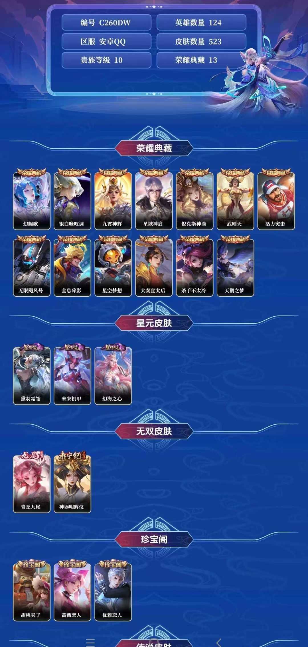 【C303】贵族V10~522皮肤13水晶70传说2无双青丘九尾,明辉仪,情瑶,幻阙歌,九霄神辉,银