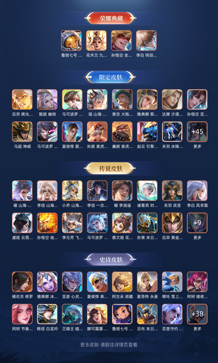 装备描述:V10 414皮7典藏1无双碎月剑心弑枪猎影银白咏叹调无限飓风号鸣剑·曳影天鹅之梦 皮肤数量:414 荣耀水晶:7 [珍品无双皮肤]: [无双数量]:1 [珍品数量]:0 [传说数量]:39 [限定数量]:176 [无双皮肤]:李白-碎月剑心 [珍品传说皮肤]: [荣耀典藏]:韩信-弑枪猎影/铠-银白咏叹调/夏侯惇-无限飓风号/李白-鸣剑·曳影/孙悟空-全息碎影/鲁班七号-星空梦想/小乔-天鹅之梦 [传说皮肤]:桑启-鸣野蒿/孙策-乘龙·淬吴钩/赵云-乘龙·铭钟鼎/孙尚香-乘龙·问璇玑/马超-琥珀纪元/艾琳-觅芳踪/诸葛亮-鹤羽星尊/张飞-百相守梦/夏洛特-浮生妄/孙悟空-齐天大圣/曜-山海·苍雷引/小乔-山海·琳琅生/李信-山海·炽霜斩/李白-诗剑行/虞姬-云霓雀翎/橘右京-枫霜尽/鲁班七号-寅虎·瑞焰/裴擒虎-寅虎·赤拳/孙尚香-异界灵契/伽罗-太华/赵云-淬星耀世/曜-李逍遥 /兰陵王-默契交锋/诸葛亮-时雨天司/公孙离-祈雪灵祝/虞姬-启明星使/孙悟空-零号·赤焰/李信-一念神魔/百里玄策-白虎志/花木兰-冠军飞将/吕布-天魔缭乱/杨戬-永曜之星/诸葛亮-武陵仙君/李白-凤求凰