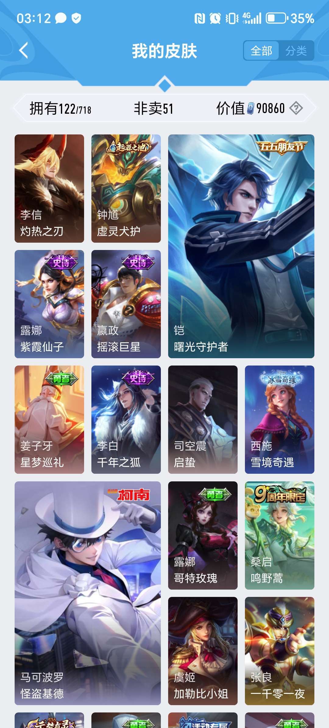 游戏区服:王者荣耀-QQ安卓-QQ账号 -手Q391区-圣殿骑士