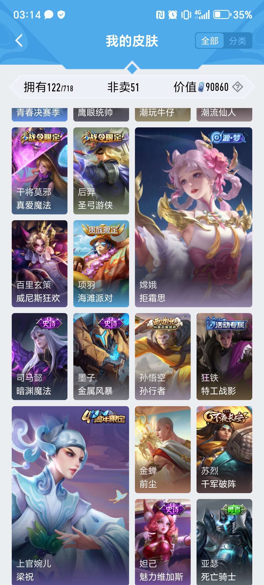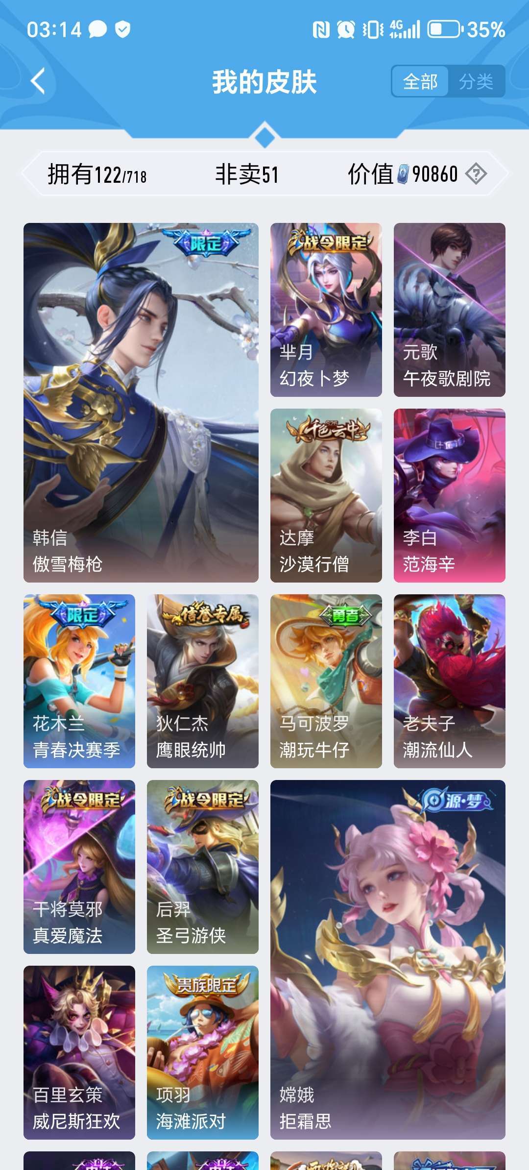 装备描述:>>>>>>毁号,涉及毁坏虚拟财产罪及计算机安全罪,请文明游戏素质游戏,让我们共建美好租号平台>>>>>> 本游戏账号: ,英雄多,皮肤多。FMVP皮肤1个,尽情享受FMVP皮肤带来的主角光环, 私人所属英雄皮肤有:上官婉儿 神器·万象笔||桑启 鸣野蒿||娜可露露 前尘镜||不知火舞 绯月行||孙策 挚爱之约||干将莫邪 画中仙||曜 李逍遥||曜 山海·苍雷引马超 无双飞将,等等 注意事项: A.游戏过程中请不要恶意挂机或者不文明发言;B.恶意挂机、顶号等行为将被拉黑无法再次下单;C.进入游戏后中途请勿退出登陆,否则无法再次上号;D.部分账号由于异地登录可能会出现密码错误提示,通常再尝试5-6次后可上号。 |||||||||>喜欢本账号请点 ☆收藏☆ 方便下次租用,谢谢光临惠顾|||||||||