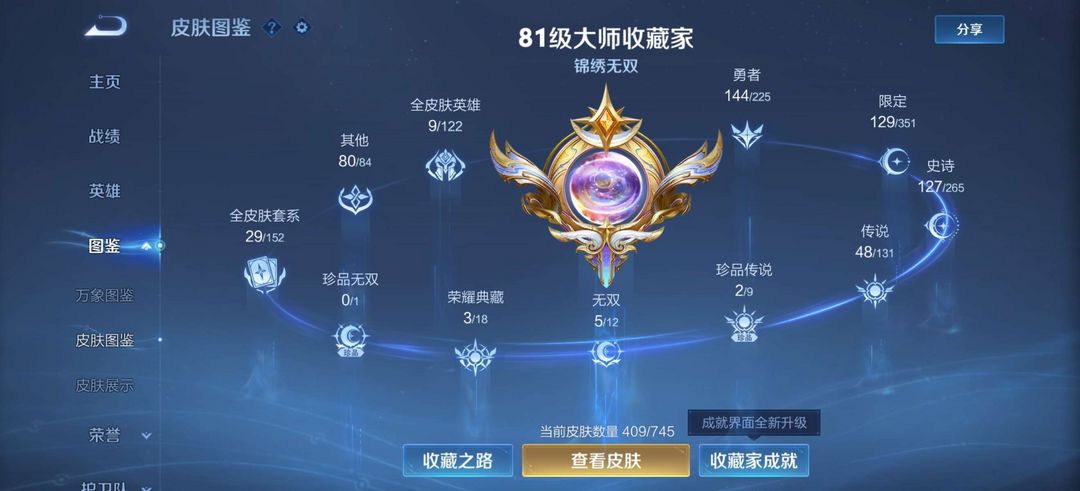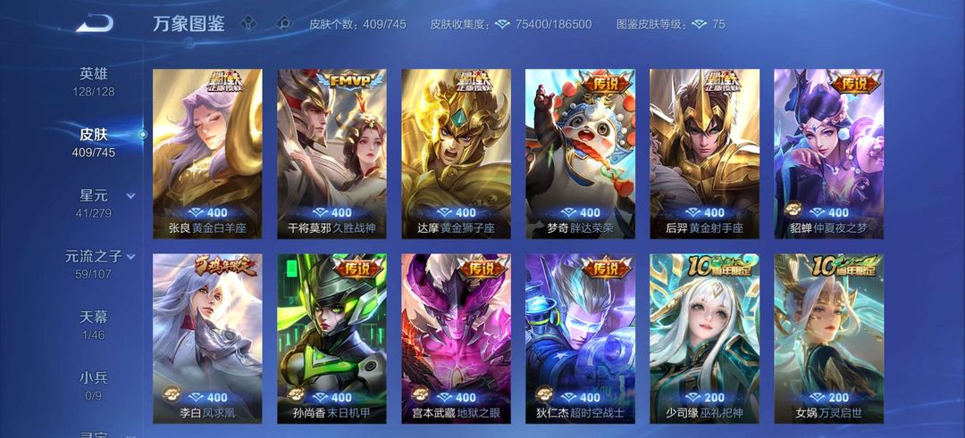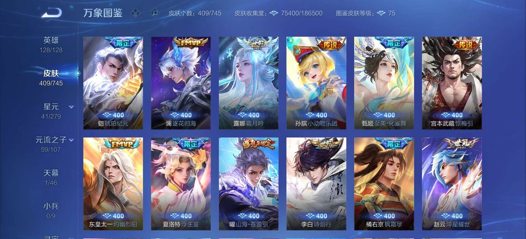 装备描述:共410皮肤,新皮肤杨戬纵目千山,元歌诡秘之主。西施织梦人,周瑜百相守梦,狐妖小红娘大司命东方月出。夏侯惇霜北刀 76级精英收藏家:②珍品传说 / ④无双 / ③荣耀典藏 / ④⑤传说 / ①⓪⑨限定 / ①①⑤史诗,王者九年玩家。 套装:⑤龙年限定,⑤圣域传说(黄金圣斗士),③琥珀纪元,④世冠,④86版西游记,②古今物语,③群星魔术团,②名侦探柯南,①冰雪奇缘,⑦FMVP,⑤KPL,②诡秘之主,①狐妖小红娘等 皮肤:武则天东方不败,马可波罗怪盗基德,鲁班七号江户川柯南,妲己青丘·九尾,小乔时之魔女,甄姬雪境奇遇,韩信群星魔术团,伽罗最初的交响和太华·红枫,虞姬神鉴启示录,关羽赤影疾锋,夏洛特浮生妄,吕布曦玄引,亚连落雪白狼。澜逐花归海,露娜霜月吟,孙膑小动物乐园和寅虎展翼,宫本武藏惊梅引,甄姬至美化雀舞,曜山海苍雷引,橘右京枫霜尽。周瑜小乔音你心动。李白凤求凰。刘备时之恋人。阿轲化蝶舞。弈星赤弈燎原和王阁序。曹操夜都魔契,海诺心动手记,桑启奇遇星旅。盾山梦圆繁星等。 温馨提示:请游戏局内保持文明,防止禁言影响他人游戏,喜欢本账号请点 ☆收藏☆ 方便下次租用,谢谢光临惠顾!