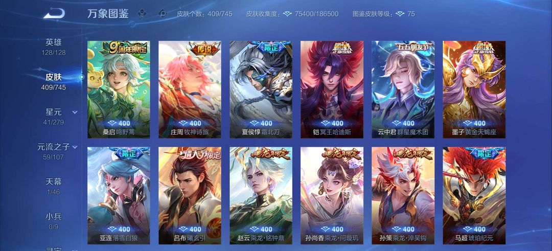 杨戬纵目千山,凯神罪,马可波罗怪盗基德,鲁班七号江户川柯南,小乔时之魔女,甄姬雪境奇遇等410皮