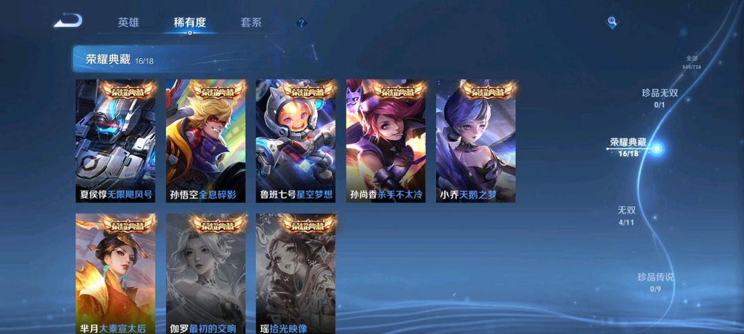 大国标耀1.2w金标伽罗 v10 540皮16典藏4无双78传说