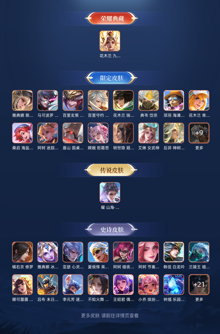 典藏皮肤九霄神辉,绝版DC联动皮神奇女侠。全英雄+全铭文,88款史诗、127款勇者皮。