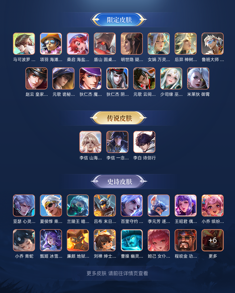 后羿神树通天➕按键 元歌全皮 李信全皮 马超琥珀纪元(按键)➕无双飞将(按键)李白剑诗行 墨子龙骑士