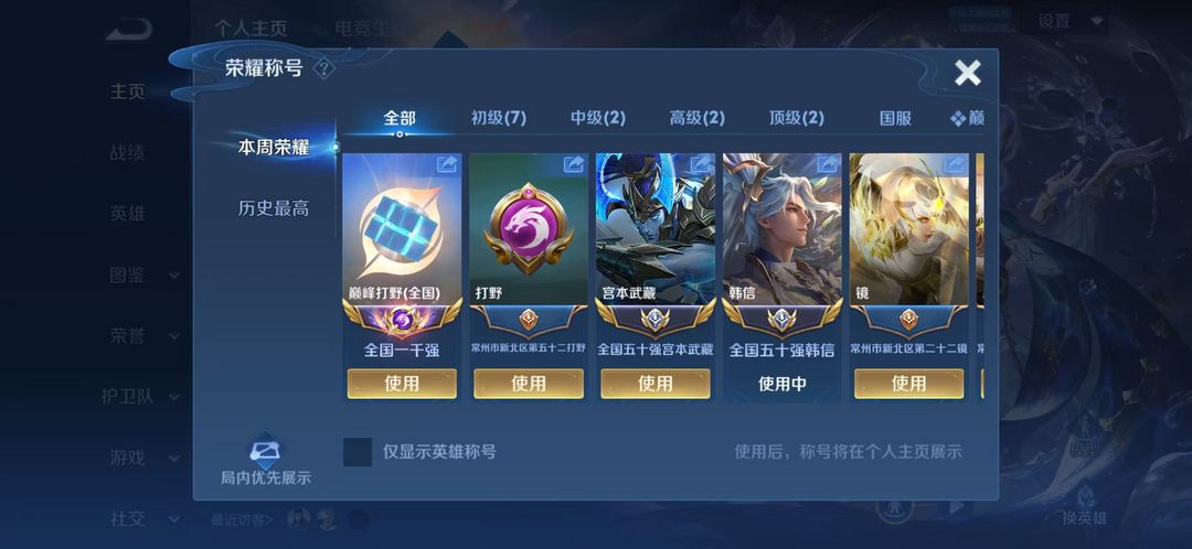 巅峰4483名闪电框⭐️双小国50强韩信宫本在榜⭐️带妹推荐号⭐️可排位禁巅峰