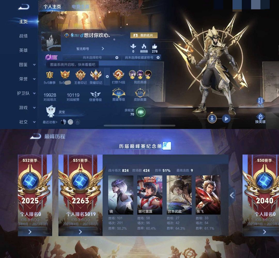 V7打野74段魔方号♉百星标识♉历史巅峰三千强♉1.4万分镜老虎宫本露娜曹操