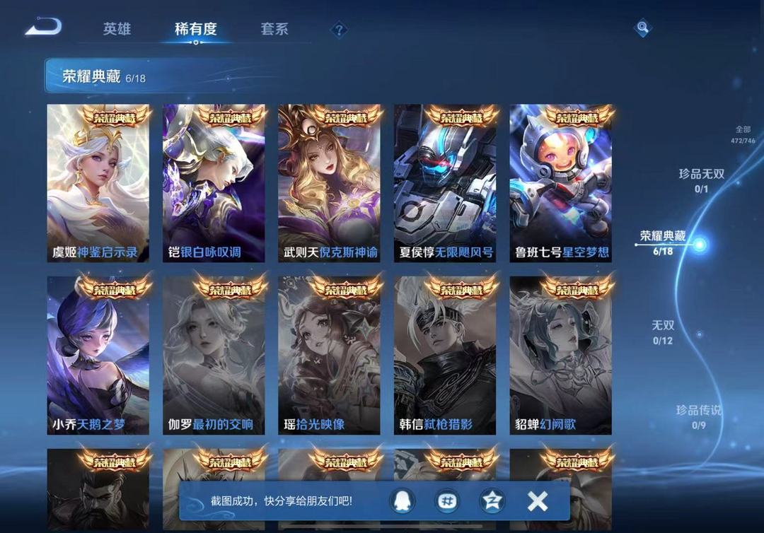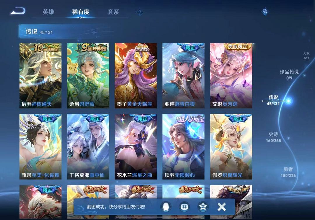 V10丨472皮肤7典藏水晶丨6星传说丨45传说丨超多限定皮肤丨包天特惠