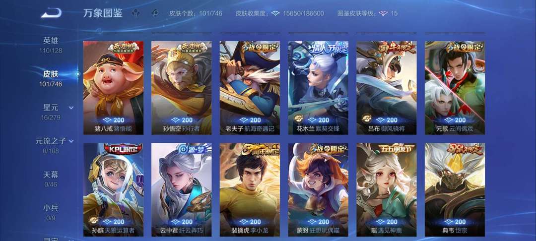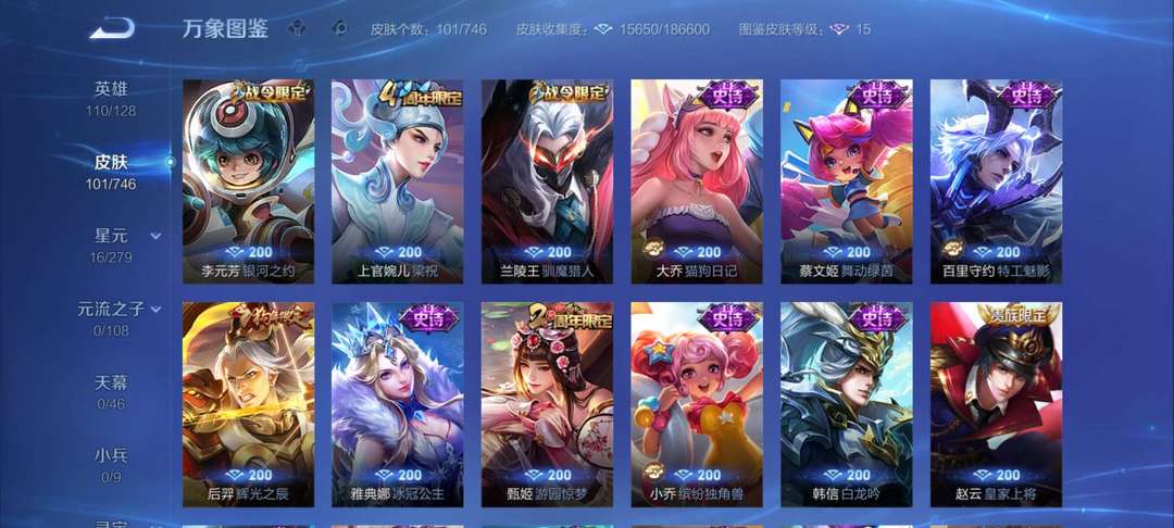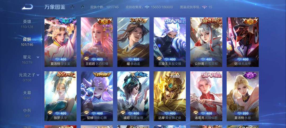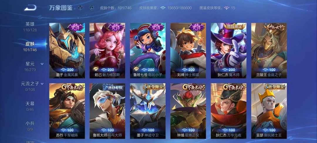 少量限定皮肤,各种传说皮肤,总102款皮肤,因上班,不能玩游戏了,便宜出租。可打排位