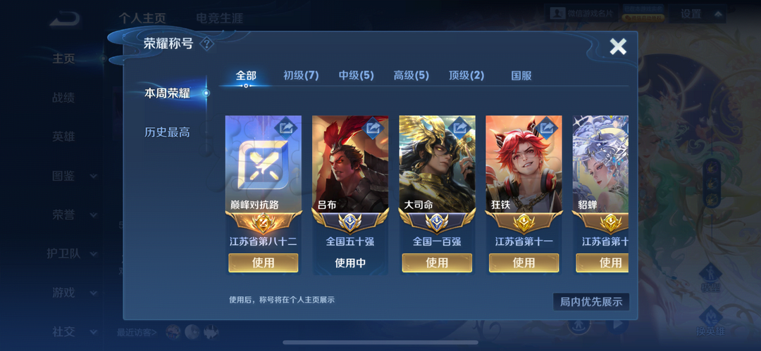 游戏区服:王者荣耀-微信苹果-微信账号 -微信154区-奇遇舞章