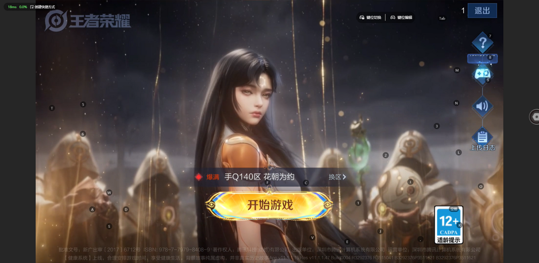 游戏区服:王者荣耀-QQ苹果-QQ账号 -手Q140区-花朝为约