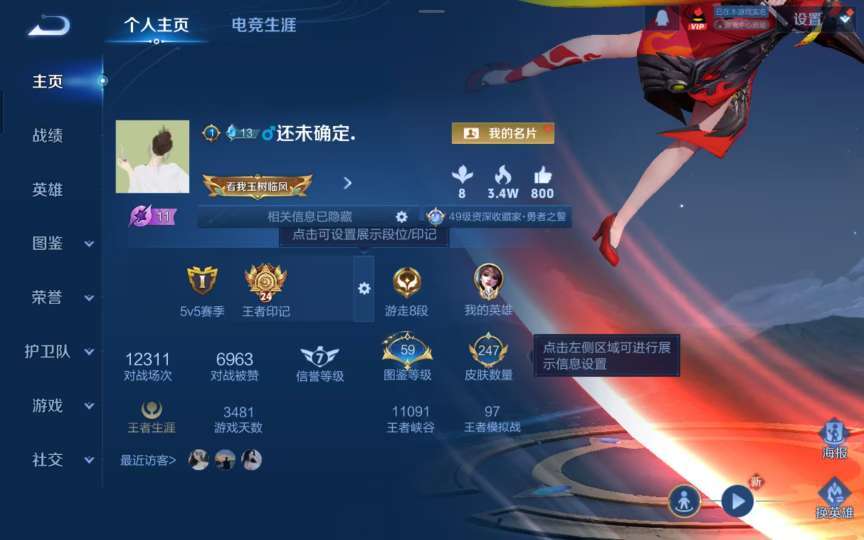 装备描述:图鉴等级59,124英雄数量,247皮肤数量 貂蝉慕夏,2荣耀典藏,8传说,马可怪盗基德