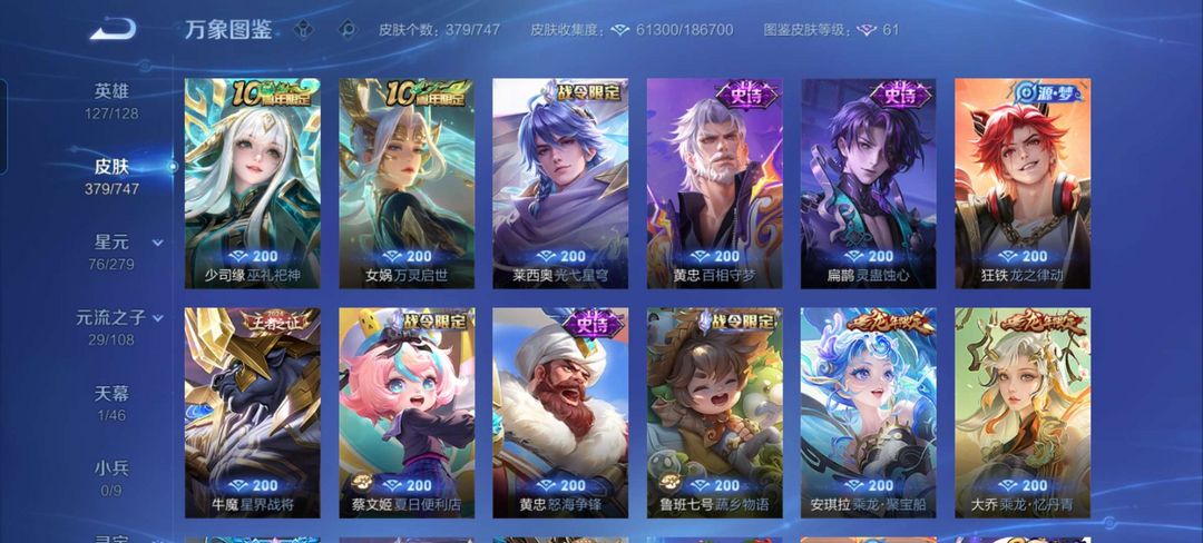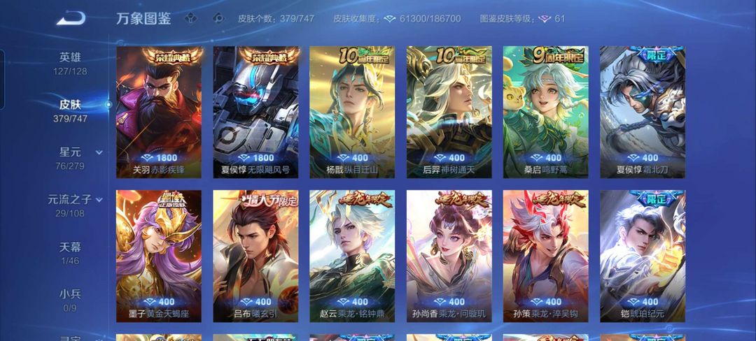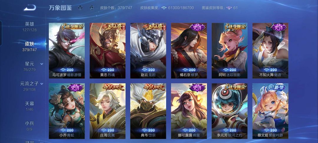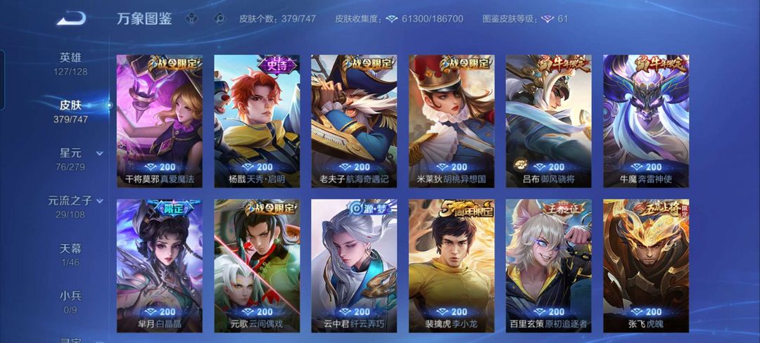 V9,379皮肤,赤影疾锋,无限飓风号,至尊宝,凤求凰,天魔缭乱,龙年限定,引擎之心,龙胆,唐三藏等