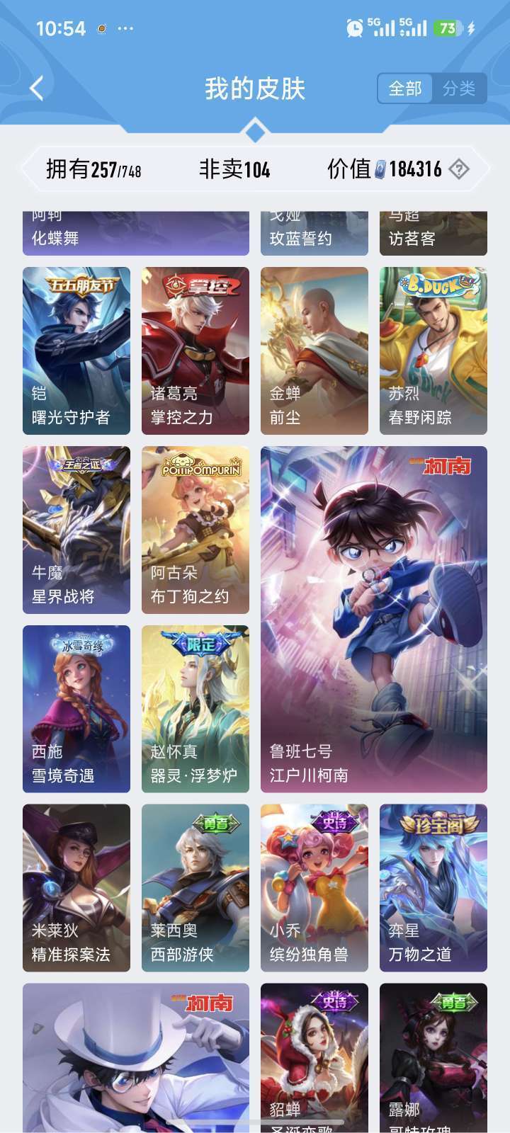 装备描述:怪盗基德,柯南白虎志,电玩小子,柯南,多款限定,皮肤都巨帅