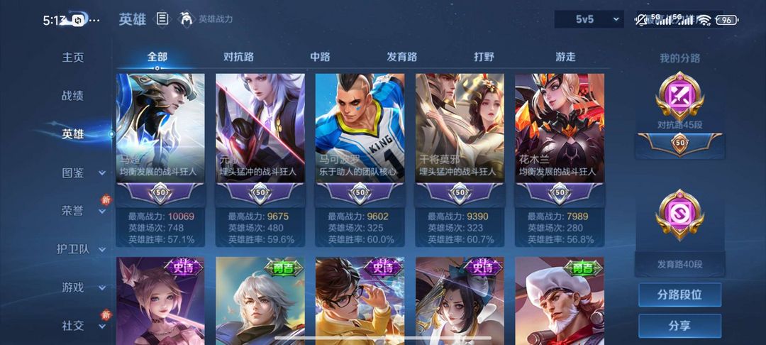 万战马超,多个9000+英雄,45段对抗,40段射手,9传说,43史诗,段位荣耀王者