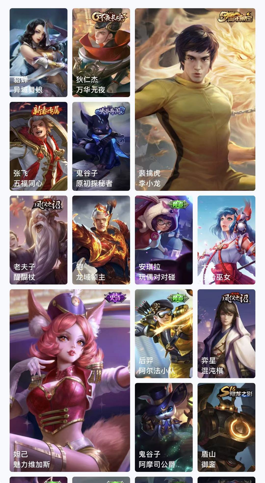 装备描述:英雄:孙尚香;蒙犽;黄忠;妲己(妲己 魅力维加斯,妲己 少女阿狸);后羿(后羿 阿尔法小队);兰陵王;百里守约;钟无艳;安琪拉(安琪拉 玩偶对对碰);鲁班七号;钟馗;小乔;孙悟空;阿轲;芈月;曹操;王昭君;刘备;铠(铠 龙域领主);老夫子(老夫子 醍醐杖);貂蝉(貂蝉 异域舞娘);瑶;庄周;项羽;程咬金;韩信;廉颇;刘禅;周瑜;甄姬;典韦;刘邦;娜可露露;亚瑟(亚瑟 死亡骑士);张飞(张飞 五福同心);鬼谷子(鬼谷子 原初探秘者,鬼谷子 阿摩司公爵);沈梦溪;盾山(盾山 御銮)